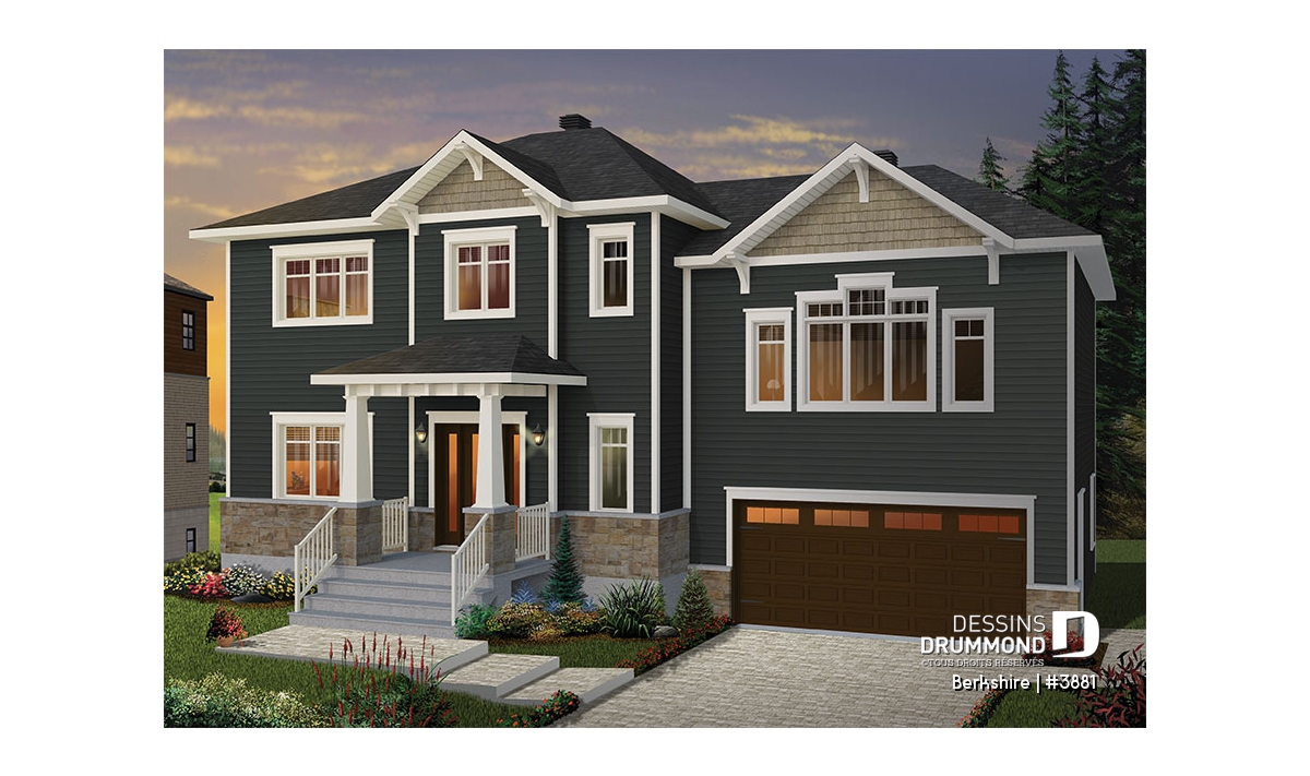 Maison de style Craftsman avec garage double.