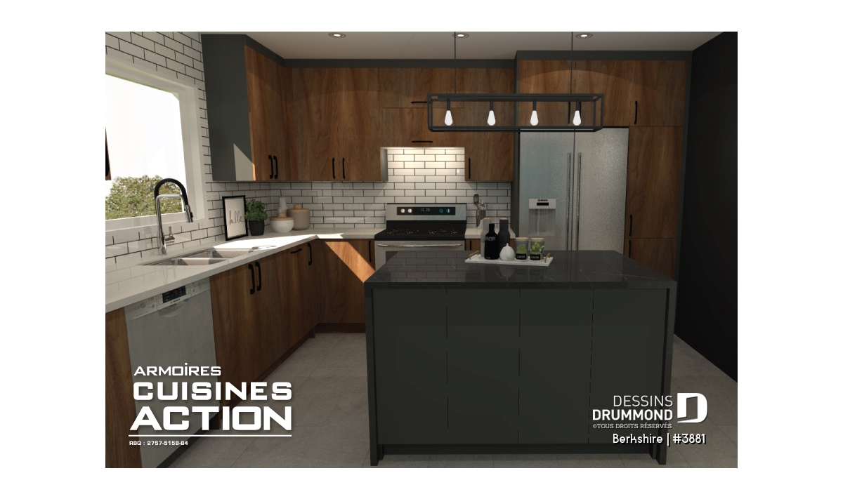 Ayant en tête les plus récentes tendances en matière de couleurs et d’espaces intérieurs, cette maison rustique champêtre vous propose 3 grandes chambres dont une grande chambre des maîtres avec accès direct à la salle de bain. Un garage double au-dessus duquel un vaste espace boni est aménagé à l'étage ( 20 pi x 21 pi ) fera certainement le bonheur de ses propriétaires. Que ce soit pour en faire une salle cinéma-maison, une 4e et 5e chambres rencontrant les besoins d’une famille reconstituée ou bien pour y aménager une remarquable suite des maîtres, cet espace boni s’avère déjà un gros plus pour ce modèle.