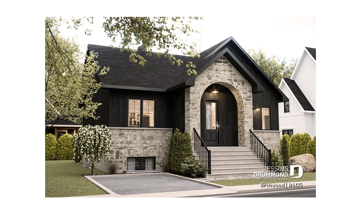 Jolie arche de pierre en façade ayant pour fonction de couvrir le balcon avant tout en conférant une belle stature à la maison.