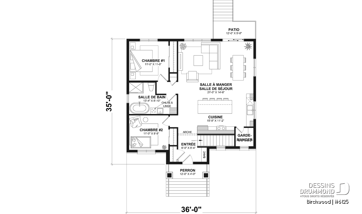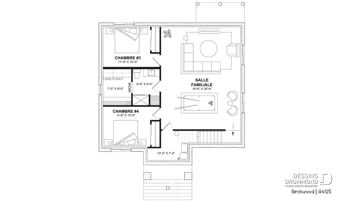 *Si vous souhaitez acheter le plan du sous-sol aménagé, tel que présenté sur la page de ce plan, veuillez sélectionner cette option dans le panier d'achat, dans la section "Sélectionner votre fondation". Si vous ne sélectionnez pas cette option, vous recevrez le sous-sol non fini, sans frais additionnel.