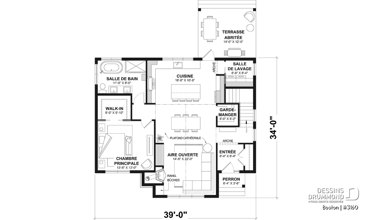 Le plan de maison BOSTON conçu par Dessins Drummond est un parfait exemple de versatilité et de confort, maximisant chaque pied carré pour offrir un mode de vie équilibré et accueillant, autant pour les familles que pour les couples actifs.