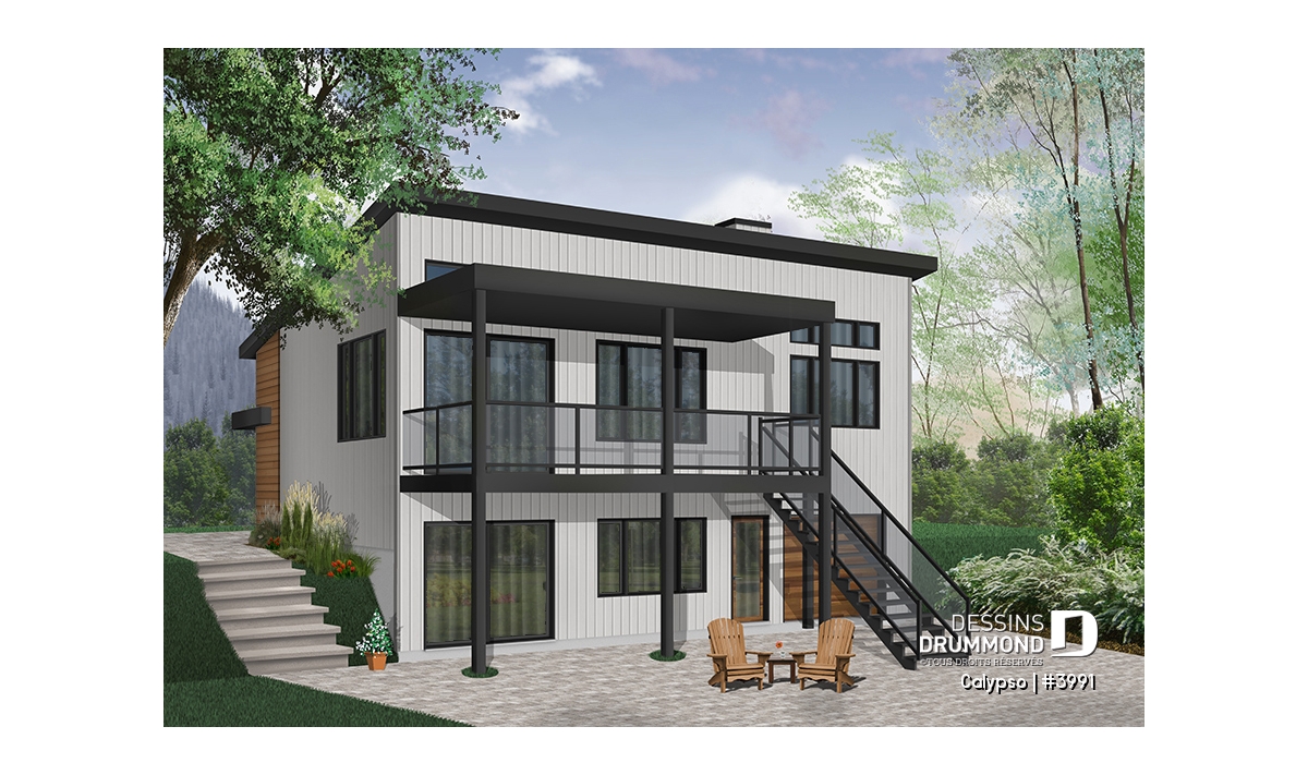 Le plan de chalet style moderne contemporain suivant, Calypso (3991) sera combler tout les amoureux de la nature.
