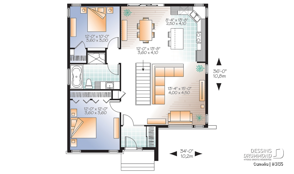 | Largeur | 34'0" | Profondeur | 36'0" |