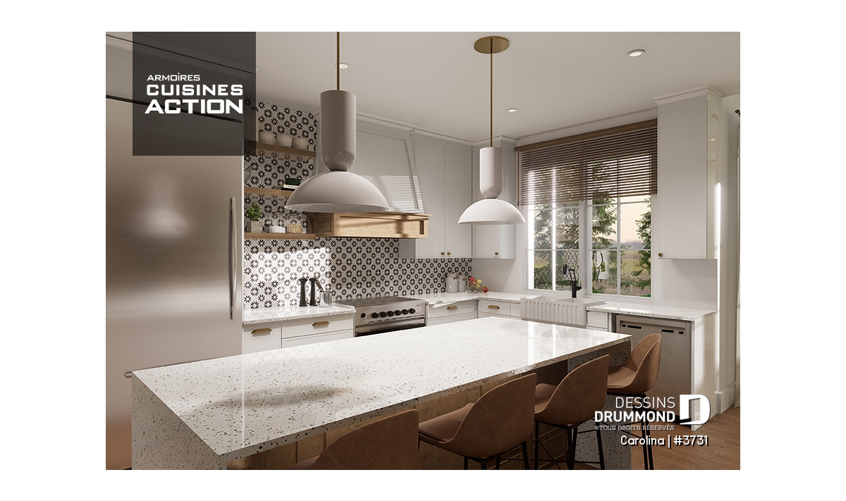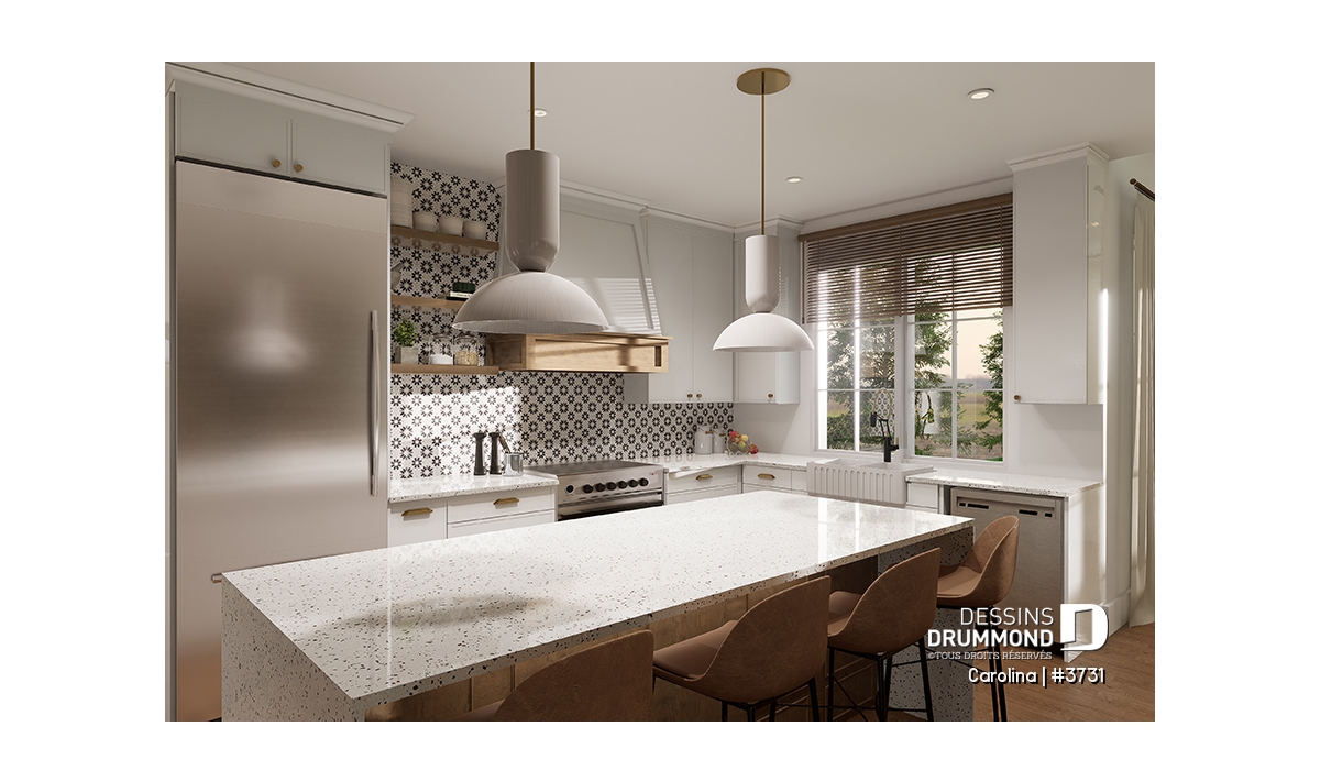 Cette magnifique maison serait superbe dans un environnement boisé, rappelant ainsi les maisons de campagne de l'époque. Bien qu'elle abore un look champêtre, elle propose des commodités tout à fait contemporaines et recherchées aujourd'hui. À cet effet, vous y retrouverez un grand vestiaire avec banquette côté garage ainsi qu'une grande pantry (garde-manger) à la cuisine. De plus de jolies arches architecturales, une porte de grande coulissante ainsi que des bancs et meubles intégrés y sont aménagés à différents endroits stratégiques.