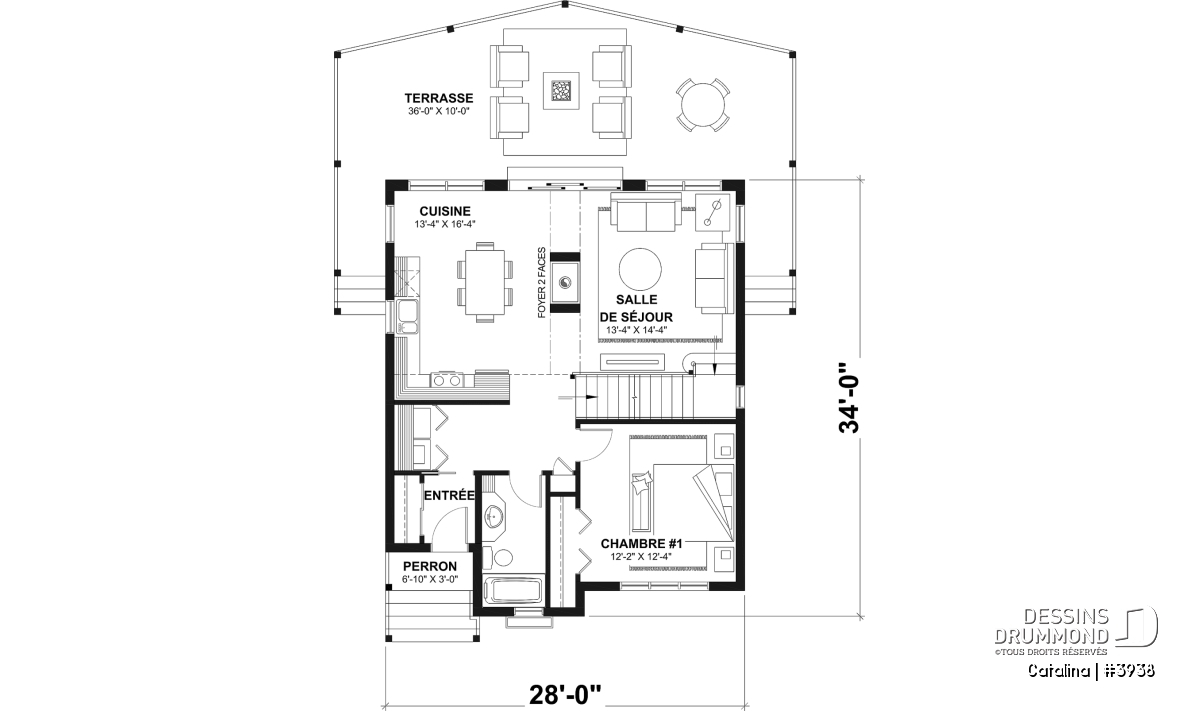 | Largeur | 28'0" | Profondeur | 34'0" |
