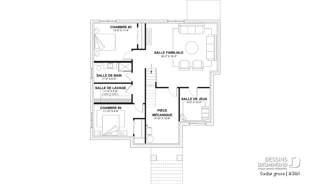 *Si vous souhaitez acheter le plan du sous-sol aménagé, tel que présenté sur la page de ce plan, veuillez sélectionner cette option dans le panier d'achat, dans la section "Sélectionner votre fondation". Si vous ne sélectionnez pas cette option, vous recevrez le sous-sol non fini, sans frais additionnel.