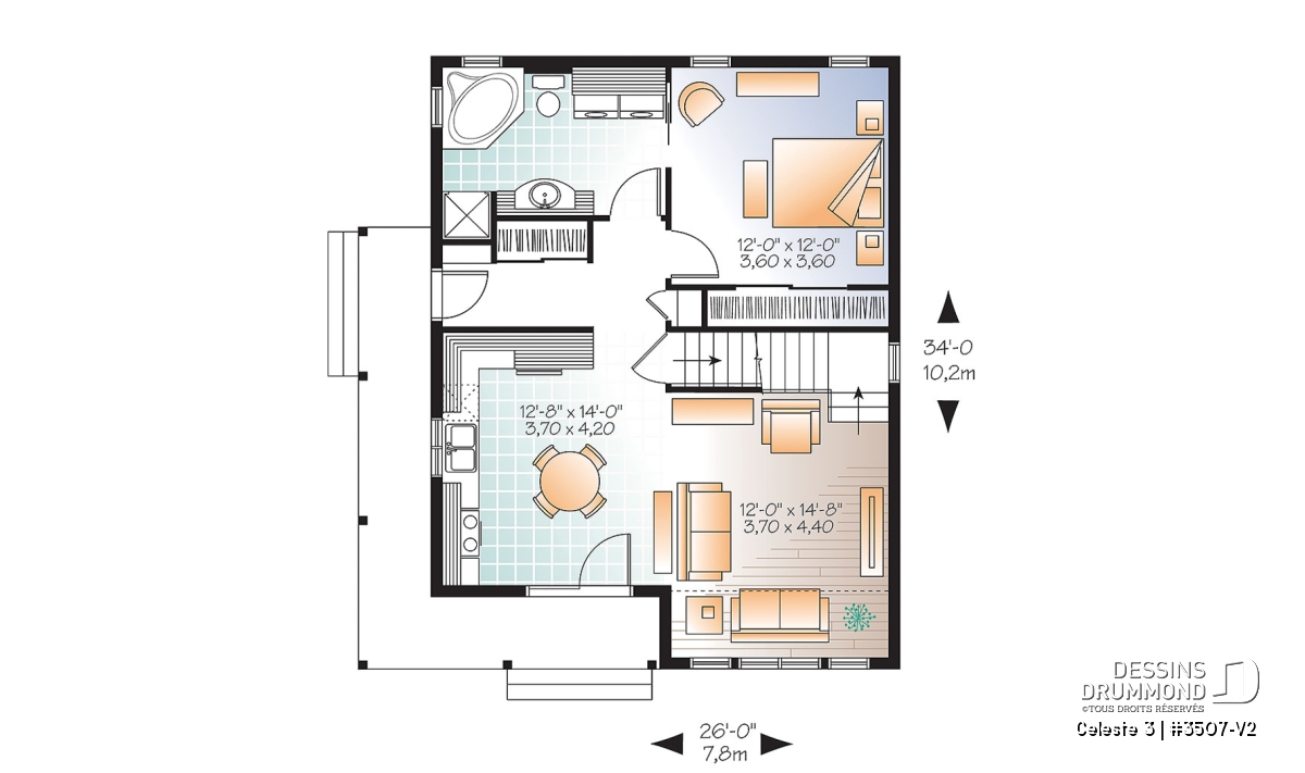 | Largeur | 26'0" | Profondeur | 34'0" |