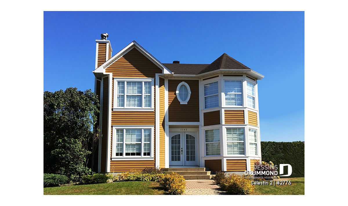 Doté de volumes bien balancés et d’une fenestration plus que remarquable en façade principale, ce cottage plan no. 2776 de Dessins Drummond, aussi appelé Célestin 2, nous charme dès qu’il apparaît à nos yeux. La couleur relevée, suggérée par l’enduit acrylique aux murs, n’est assurément pas étrangère à cet effet immédiat. Entrons donc voir si l’intérieur se veut aussi accrocheur.