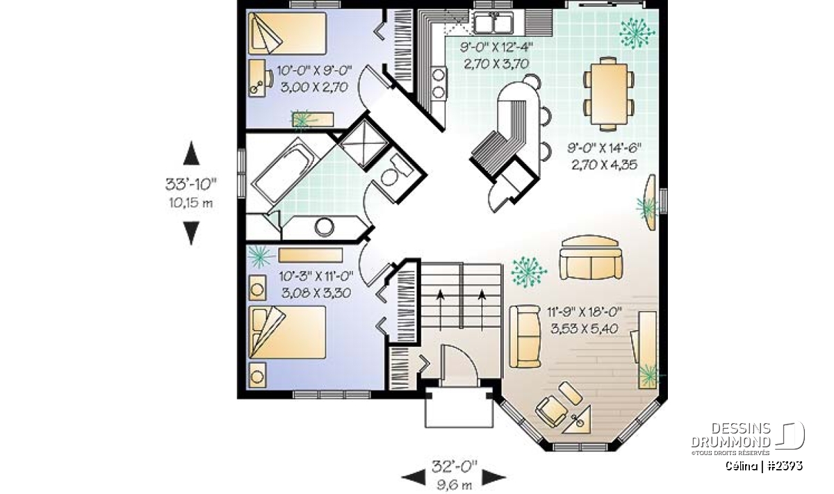 | Largeur | 32'0" | Profondeur | 34'0" |