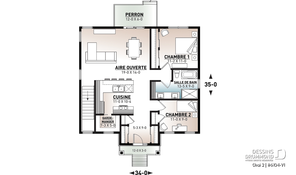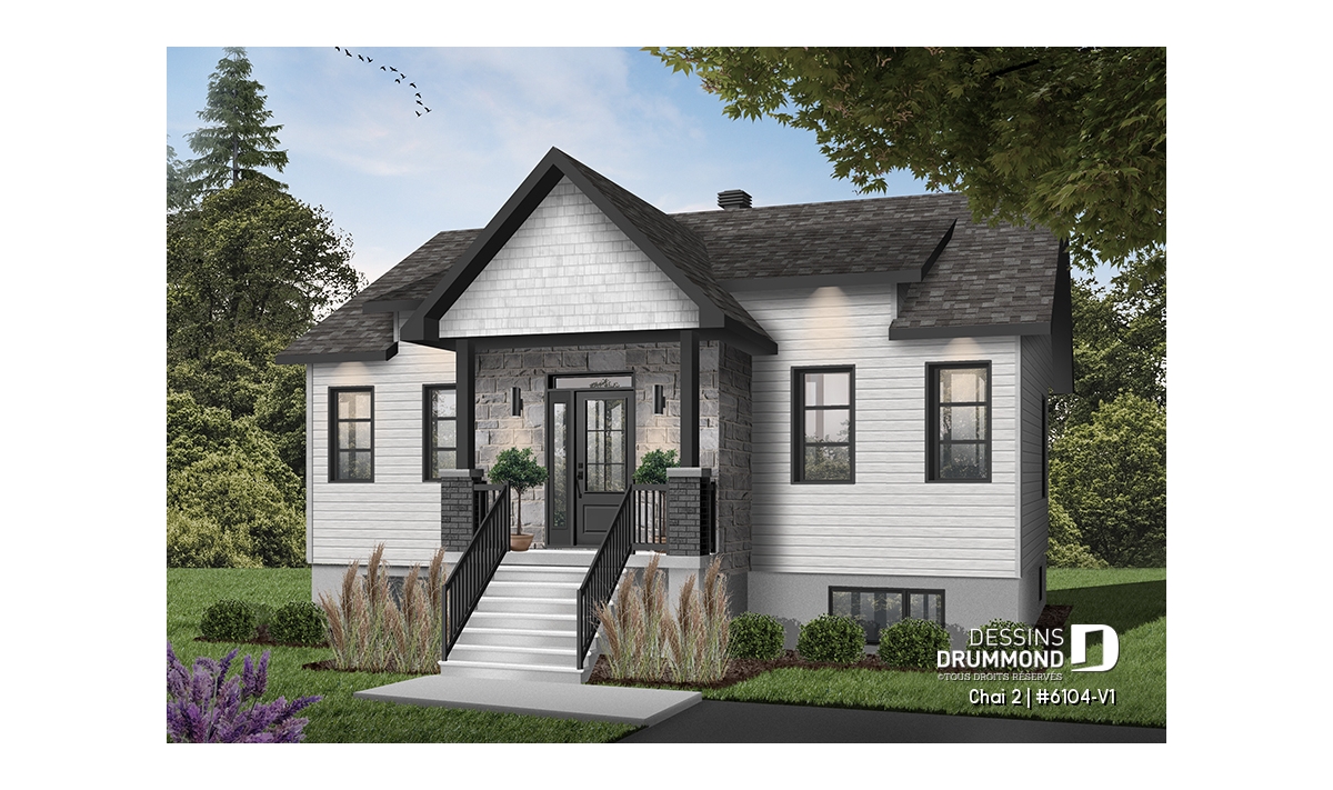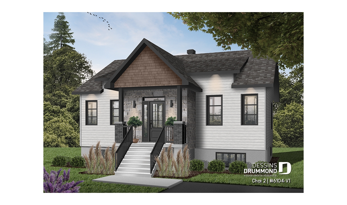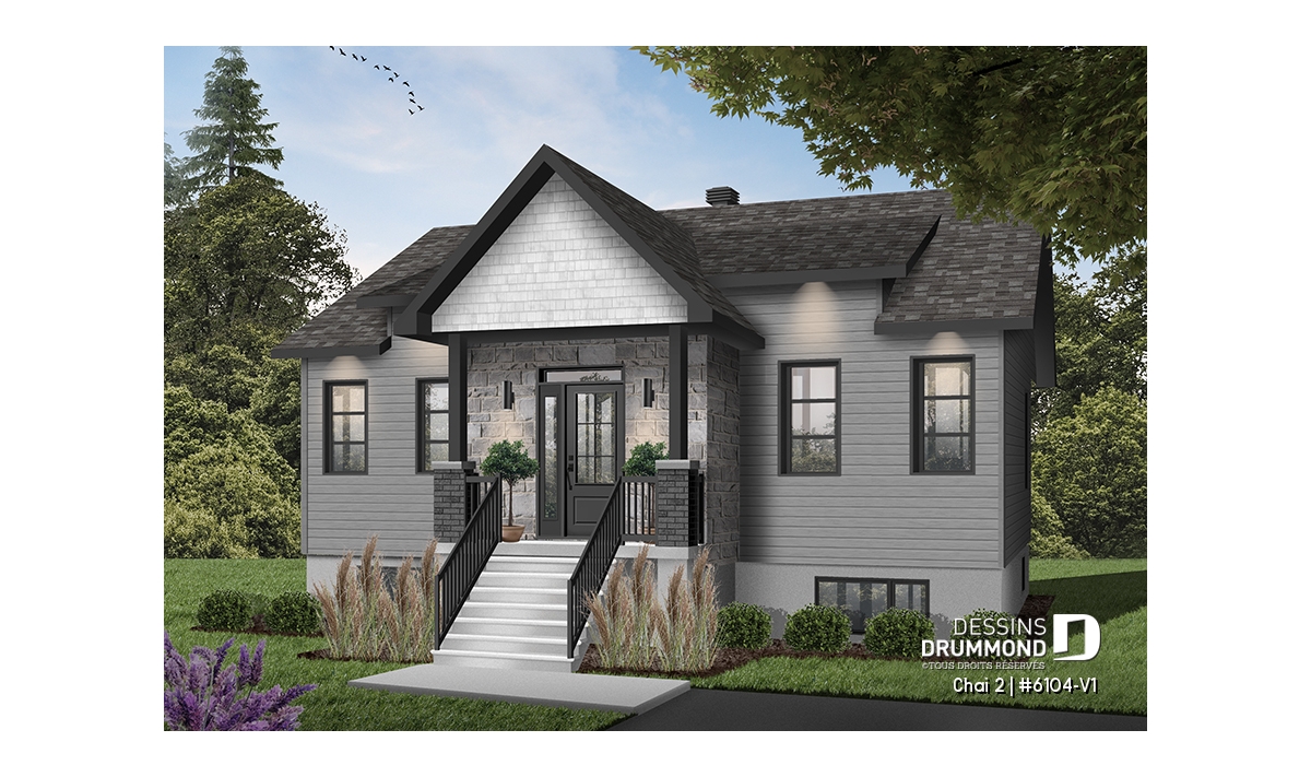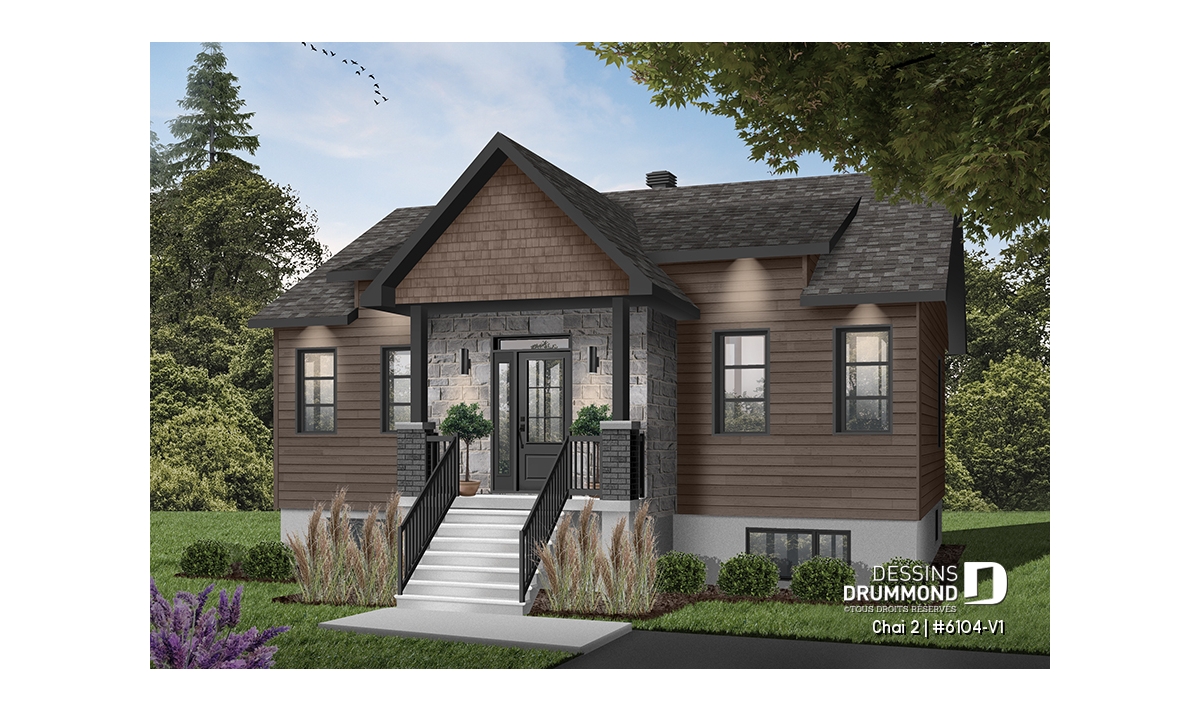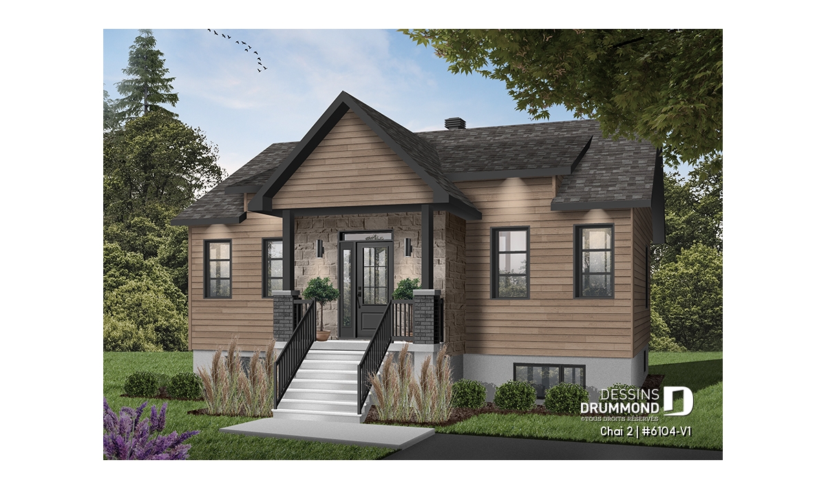Ce plain-pied, CHAI 2 (6104-V1), est coquet, moderne et rustique de 1 102 pieds carrés offrant 2 chambres à coucher et 1 salle de bain. L’architecture intérieure a été réfléchie pour offrir un effet de grandeur à ce petit plan. Avec des plafonds de 9 pieds partout au rez-de-chaussée et les espaces communs à aire ouverte, le défi est relevé haut la main.