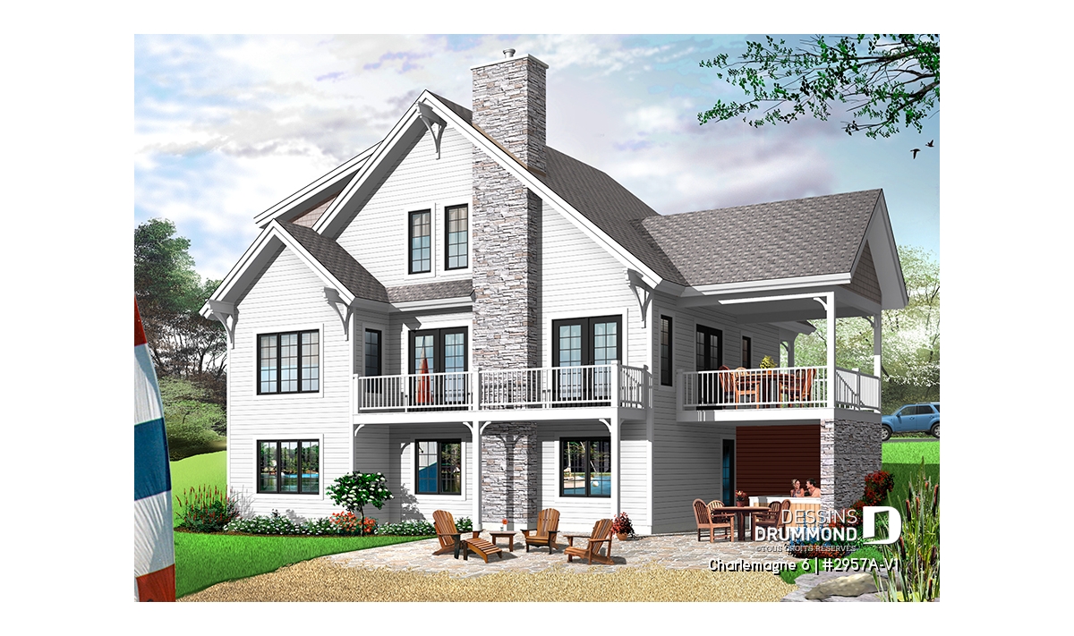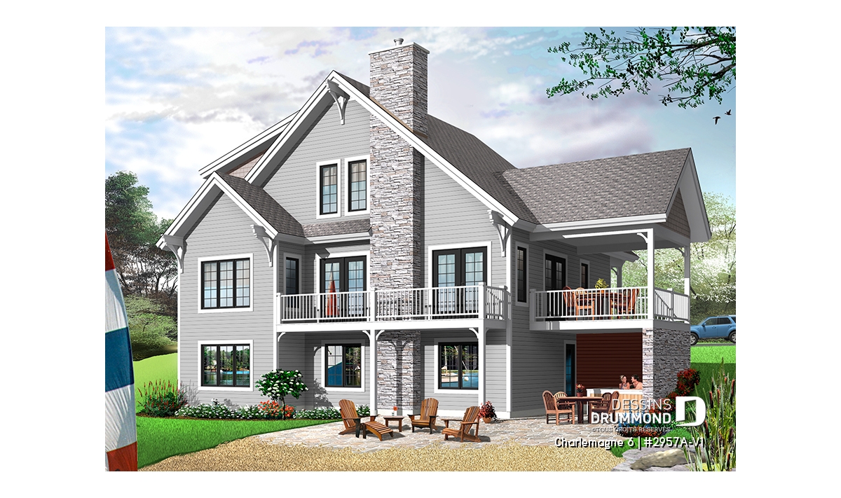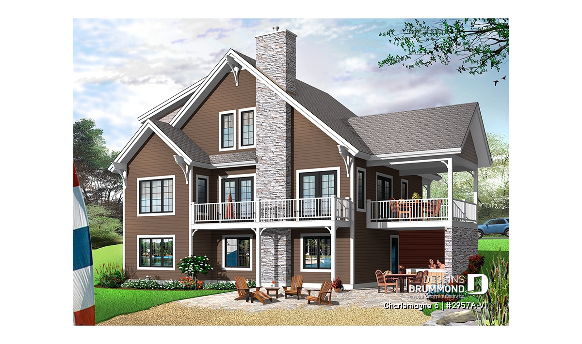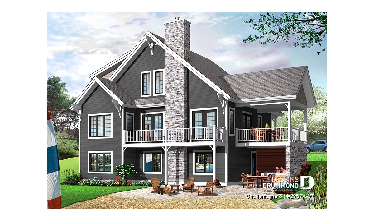 Eh oui, ce sont bien 6 belles chambres que propose ce chalet dont 4 au sous-sol avec 2 salles de douche et 2 à l’étage partageant une salle de bain complète. Au rez-de-chaussée, un vaste secteur activités, entièrement ouvert et abondamment fenêtré sur l’arrière, fera assurément le bonheur des propriétaires qui bénéficieront ici d’une grande cuisine avec îlot-lunch central, d’une salle à manger pouvant accueillir aisément 12 convives et d’une confortable salle de séjour avec plafond cathédrale et foyer. Sans oublier une double entrée principale, dont une avec large garde-robe et l’autre via le rangement de ski avec accès direct à un espace séchoir et buanderie comme tant prisé par les amateurs de sports de glisse.