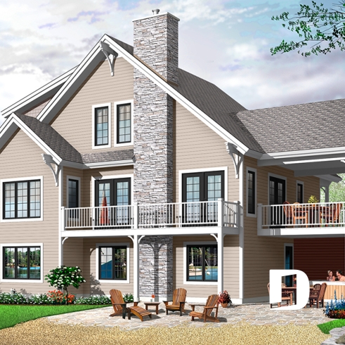 Chalet pensé pour les amateurs de sports de glisse. Plafond à 8'-8" au r-de-ch. Salle familiale avec foyer, plafond cathédrale, accès à la galerie arrière et à la terrasse abritée de 12' x 14'. Salle utilitaire ( séchoir et buanderie ) prévue au r-de-ch avec accès du rangement extérieur. Cuisine avec îlot-lunch de 8' x 4'. Quatre chambres au sous-sol avec salle de séjour et accès extérieur au bain tourbillon aménagé sous la terrasse