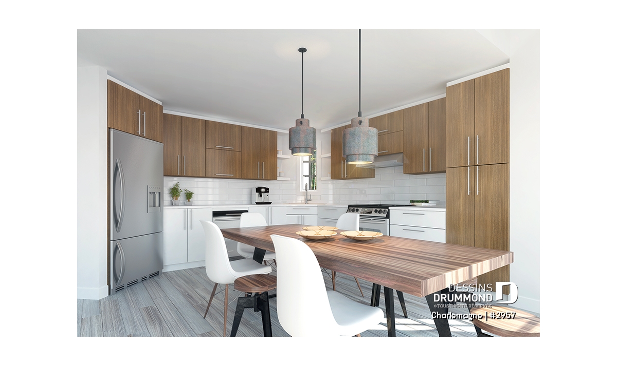 Grande cuisine permettant d'introduire la table à manger.