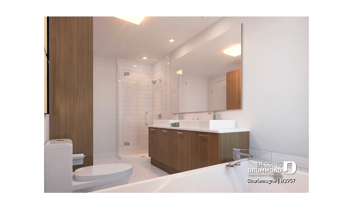 Foyer, Mezzanine, Walk-in ch. maîtres, Vestiaire, Vue paronamique, Plafond cathédrale, Aire ouverte, Bain et douche séparés, Lavabo double, Plafond en pente