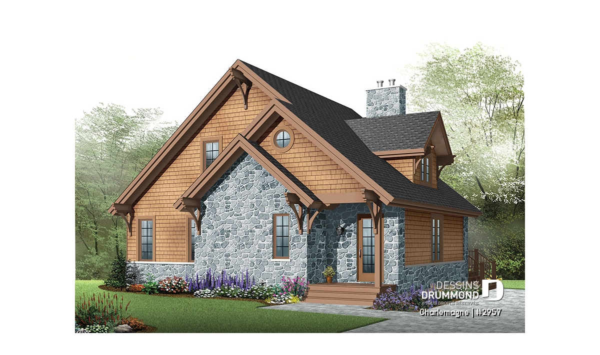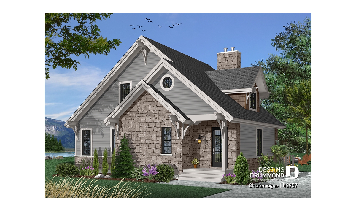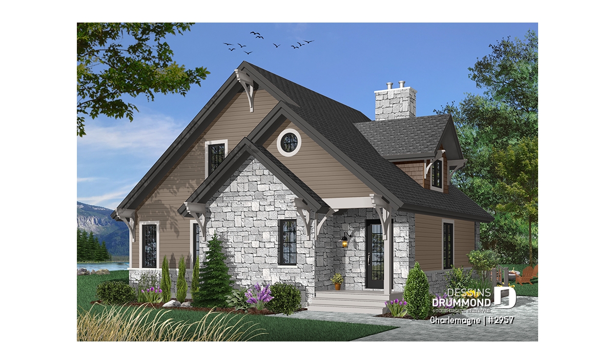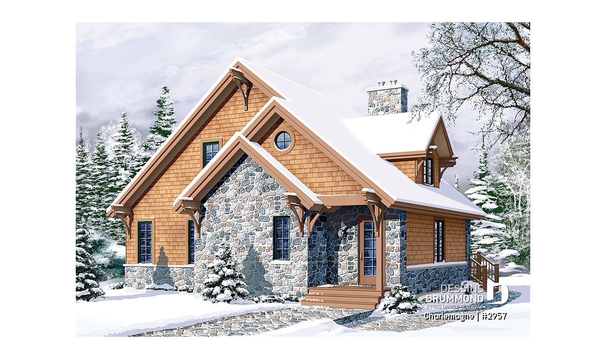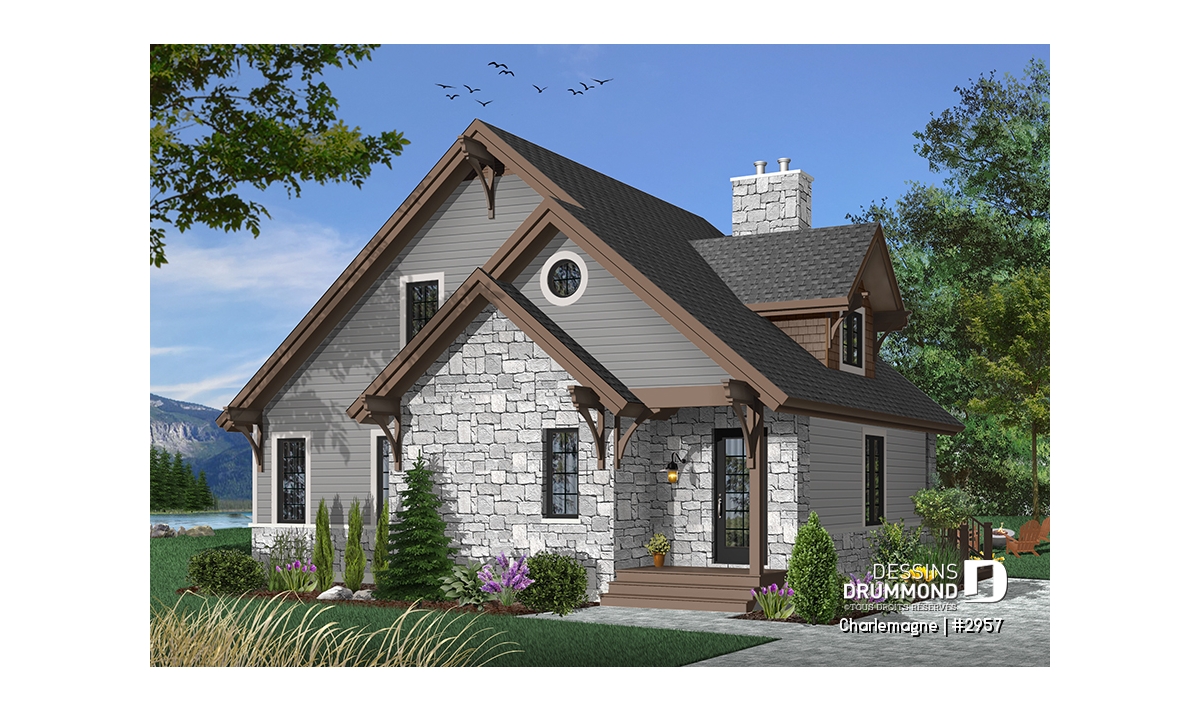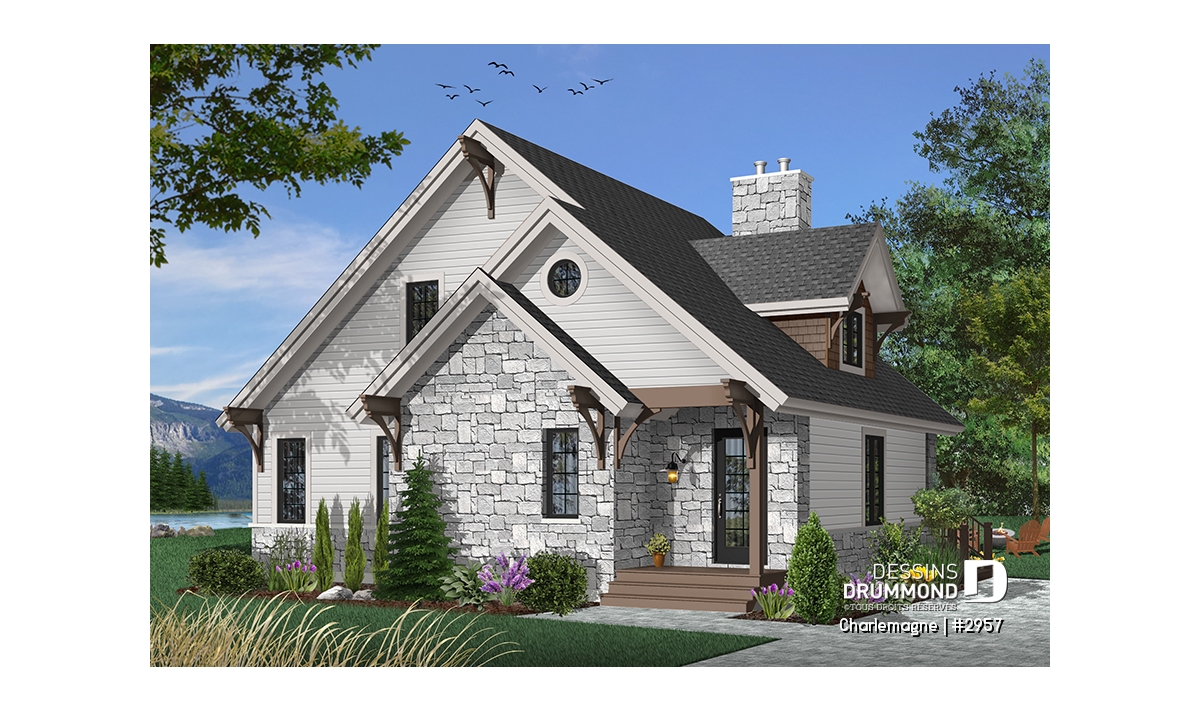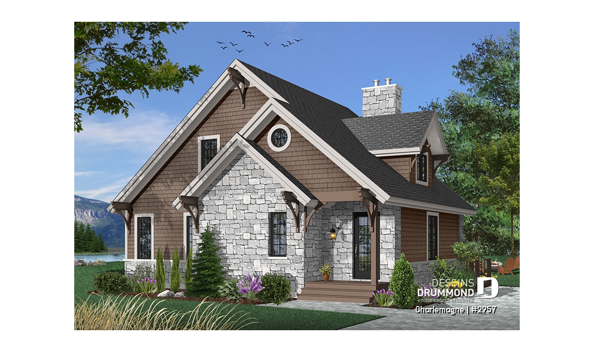 Maison idéale, se voulant chaleureuse à souhait et véritablement pas avare de fenêtres tout en proposant un mariage heureux des matériaux, des pentes de toit, des moulures et des équerres décoratives. Entrons donc sans plus tarder.