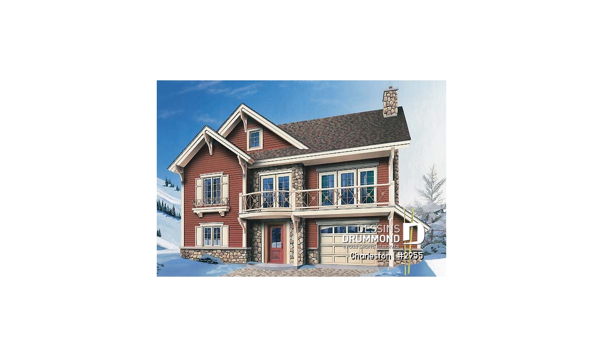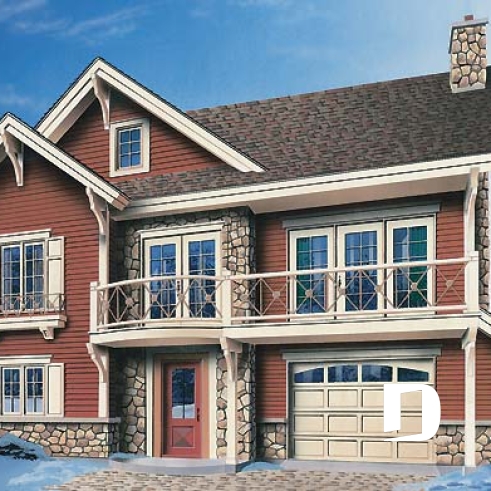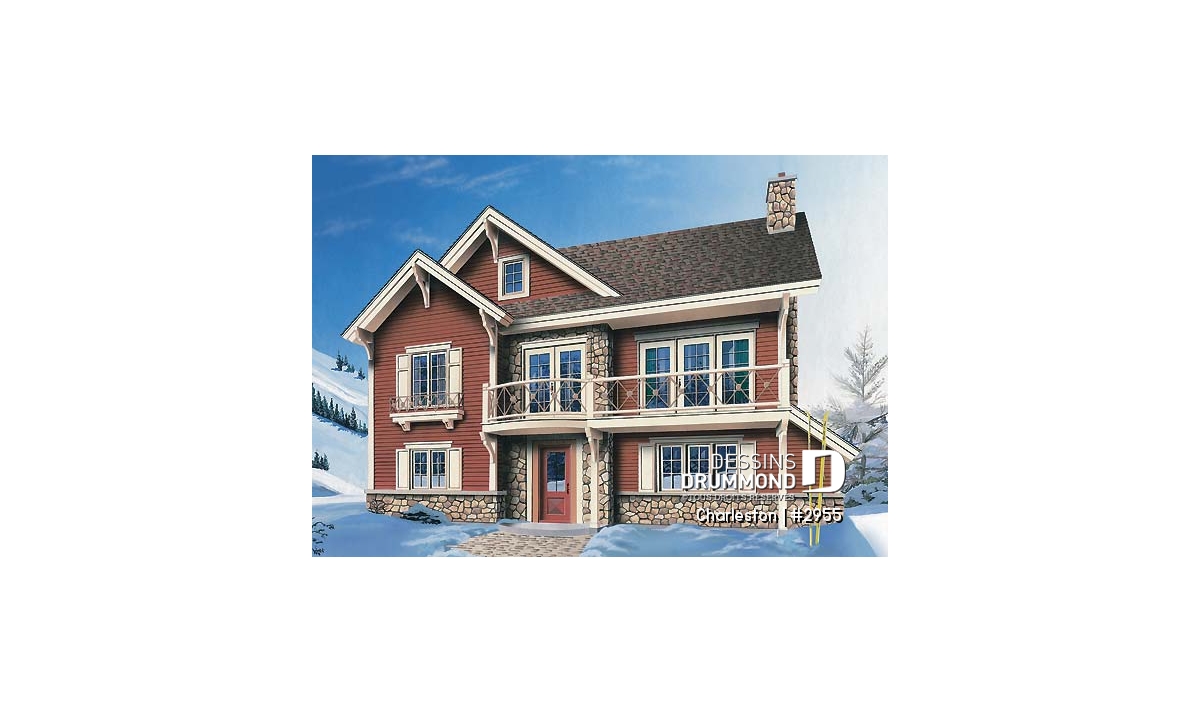Plan de chalet de ski, plancher inversé avec chambre au sous-sol et espace commun au rez-de-chaussée