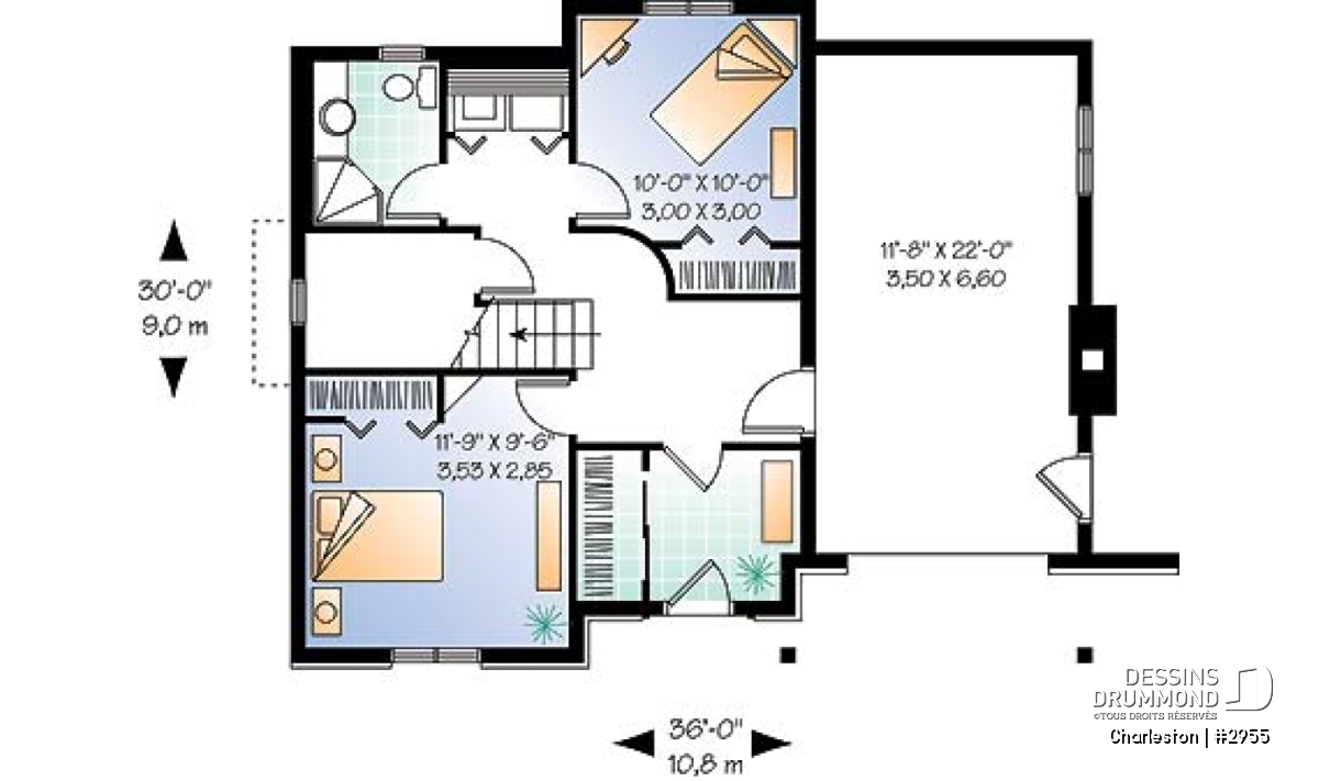 | Largeur | 36'0" | Profondeur | 30'0" |