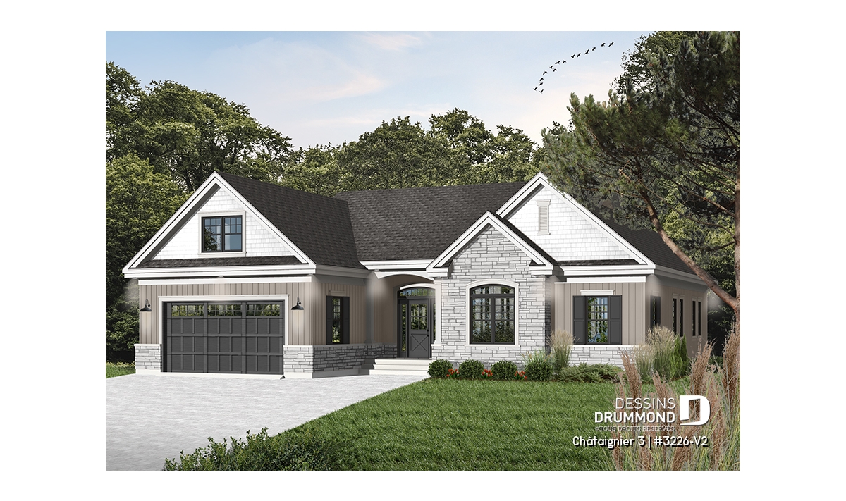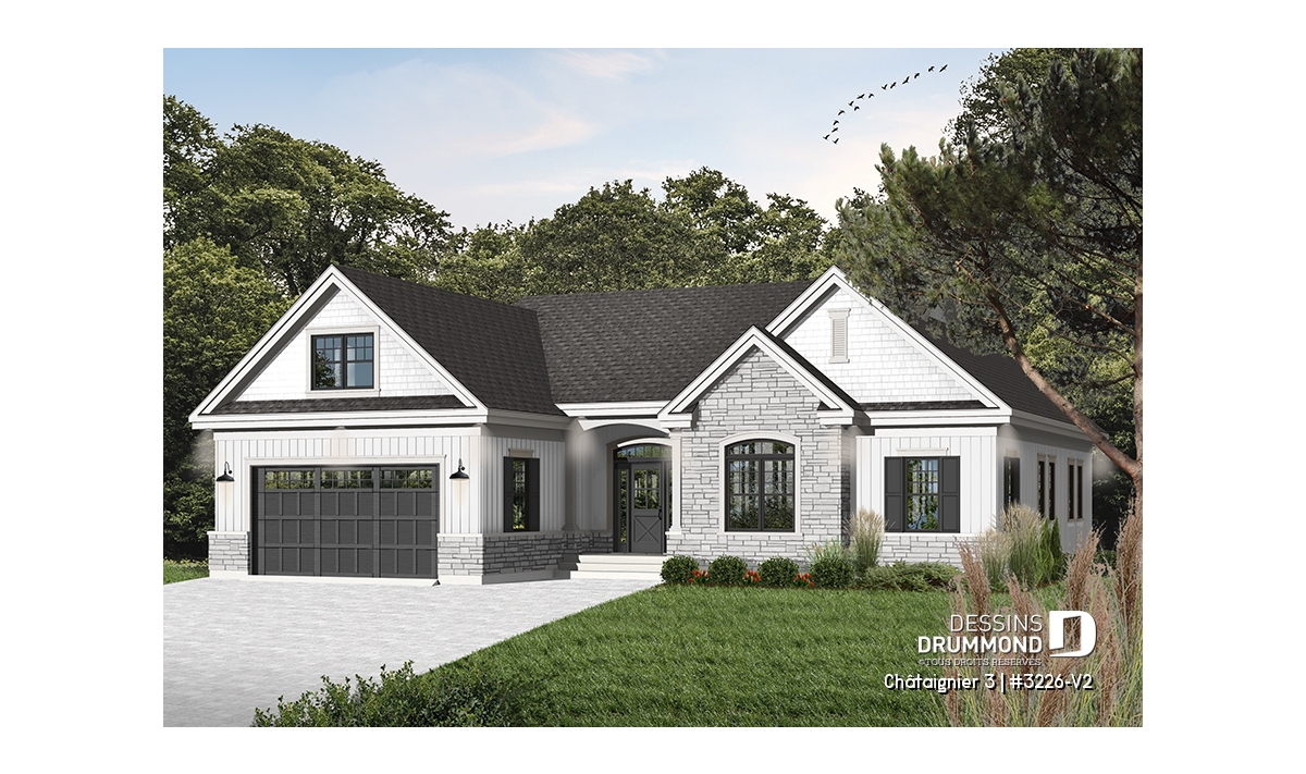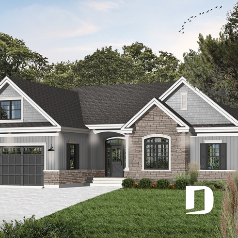 Plan de maison ranch avec garage double.