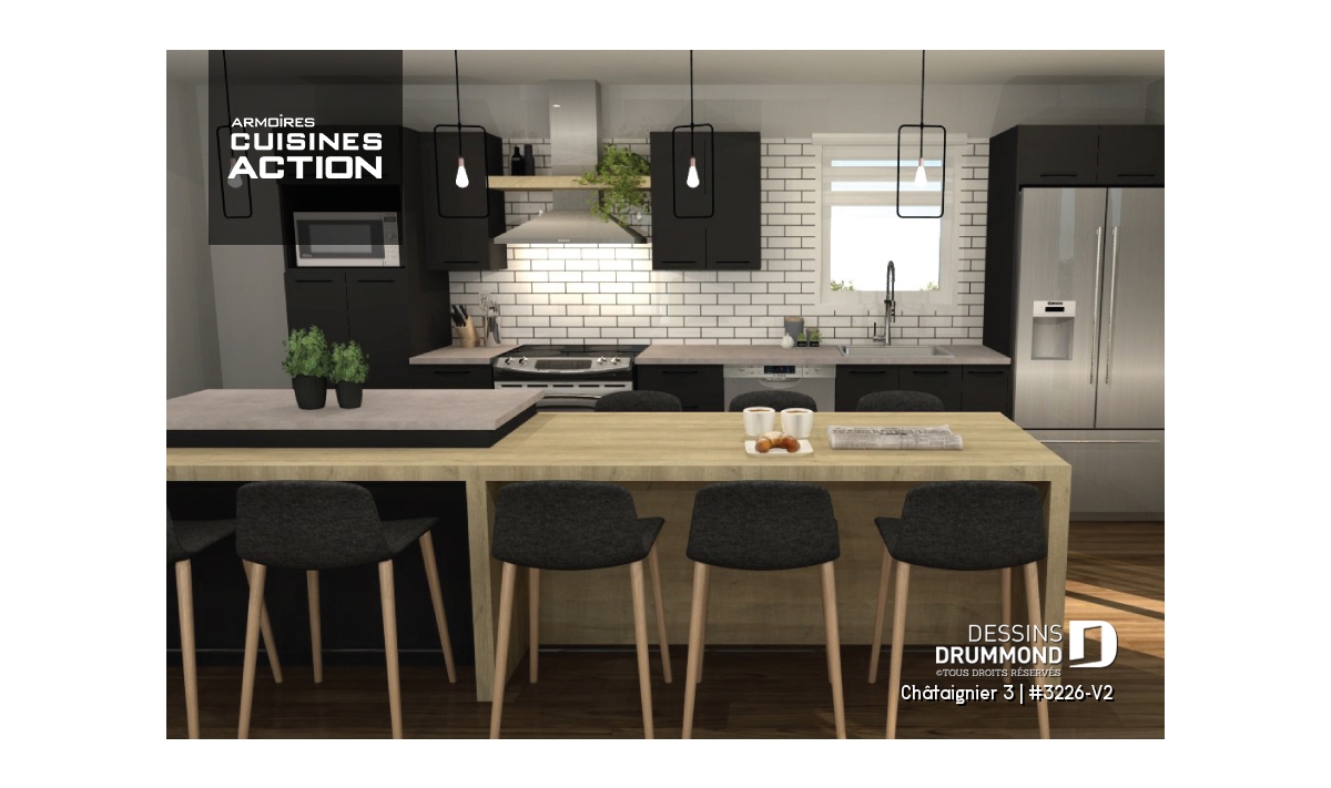 Cuisine avec îlot imposant.