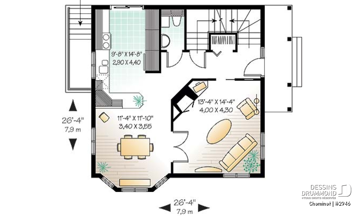 | Largeur | 26'4" | Profondeur | 26'4" |