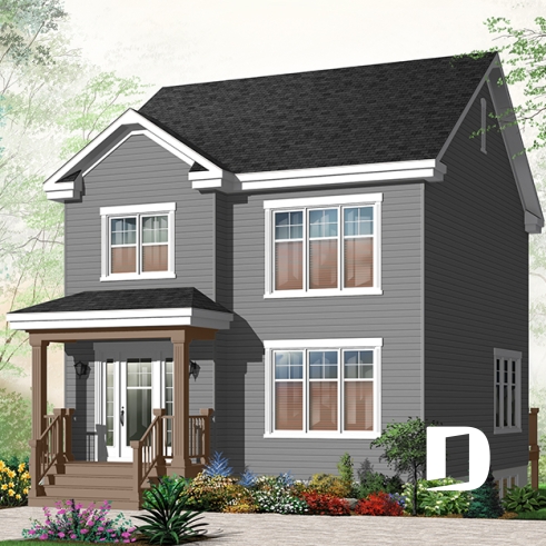 Plan de maison champêtre à étage, construction économique, 3 chambres, vestibule beau format, aire ouverte