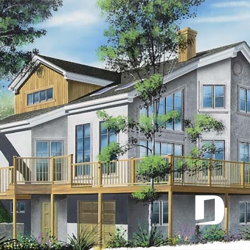 Vue arrière - MODÈLE DE BASE - Plan de chalet lumineux, 3 chambres avec 2 salles de séjour et mezzanine, garage - Clearview 2