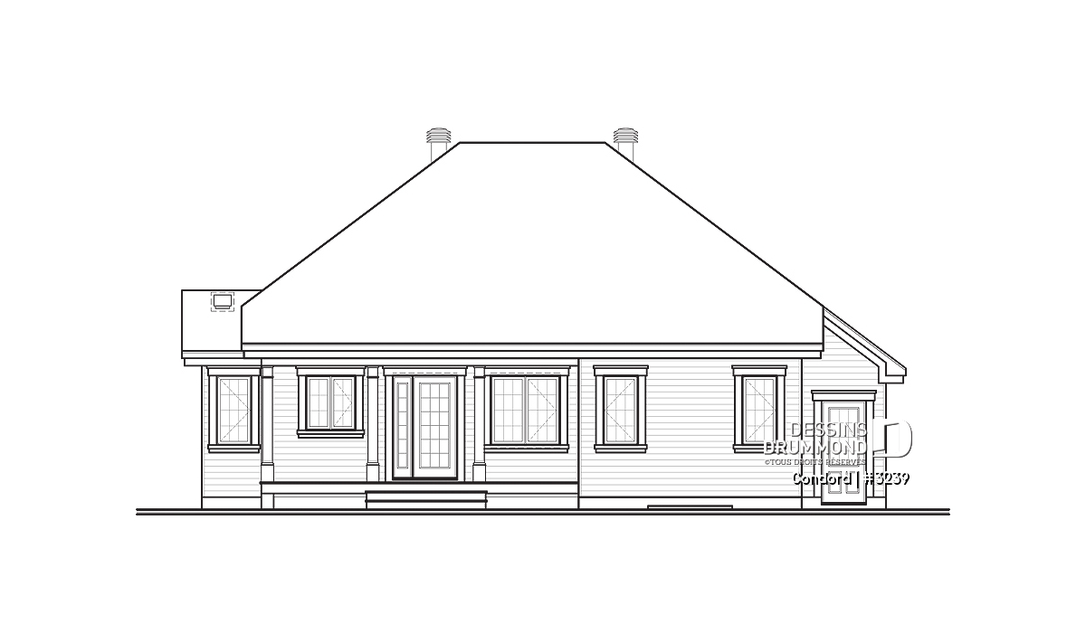 Proposant deux galeries couvertes dont une à l’avant et l’autre quasi équivalente à l’arrière, ce plain-pied prend les allures d’une maison de Nouvelle-Angleterre avec des corniches classiques, des fenêtres à persiennes aux pignons et ce beau volume, genre solarium, en saillie latérale. Sans oublier un garage de beau format tout comme on en retrouve passablement chez nos voisins du Sud. Entrons donc pour en découvrir davantage.