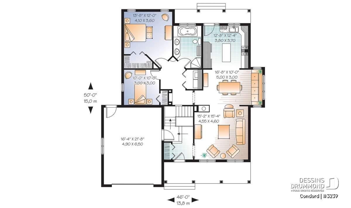 | Largeur | 46'0" | Profondeur | 50'0" |