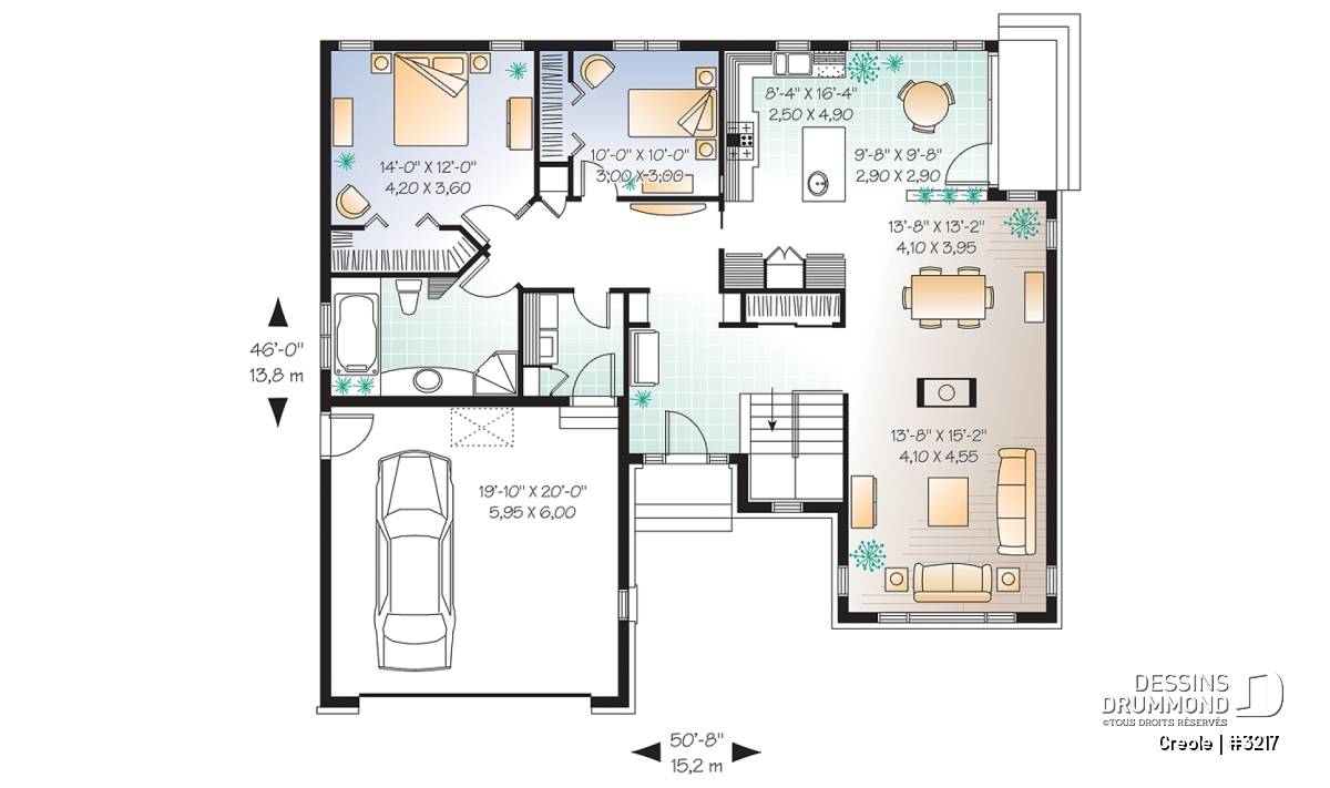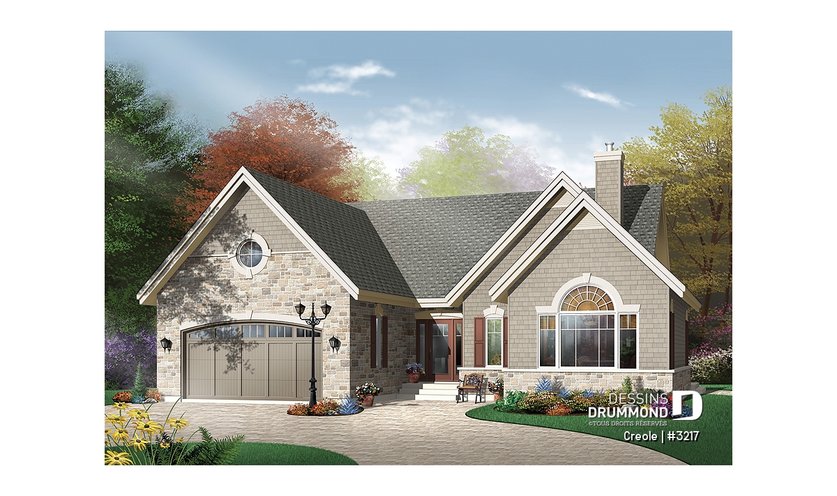 Voici un plain-pied des plus remarquables avec garage double et version deux ( 3217 ) ou trois ( 3218 ) chambres.