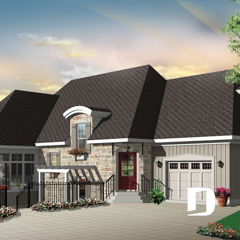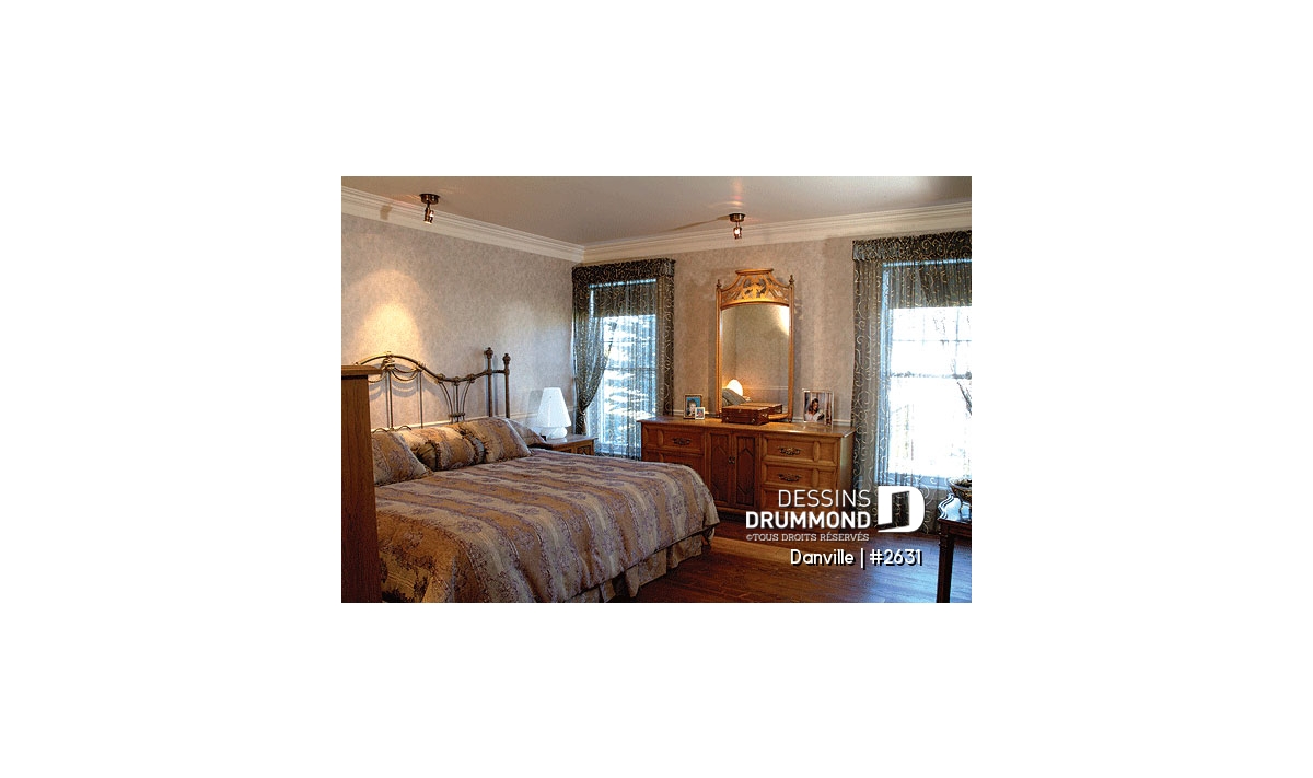 À l’intérieur, on remarque une entrée dégagée sur deux étages et agrémentée d’un escalier à angle fort invitant. On constate un secteur activités passablement ouvert, abondamment fenêtré sur l’arrière et regroupant cuisine, salle à manger, salle de séjour et verrière. Ici, au rez-de-chaussée, on apprécie la présence de la chambre des maîtres avec accès privé à la salle de bain.