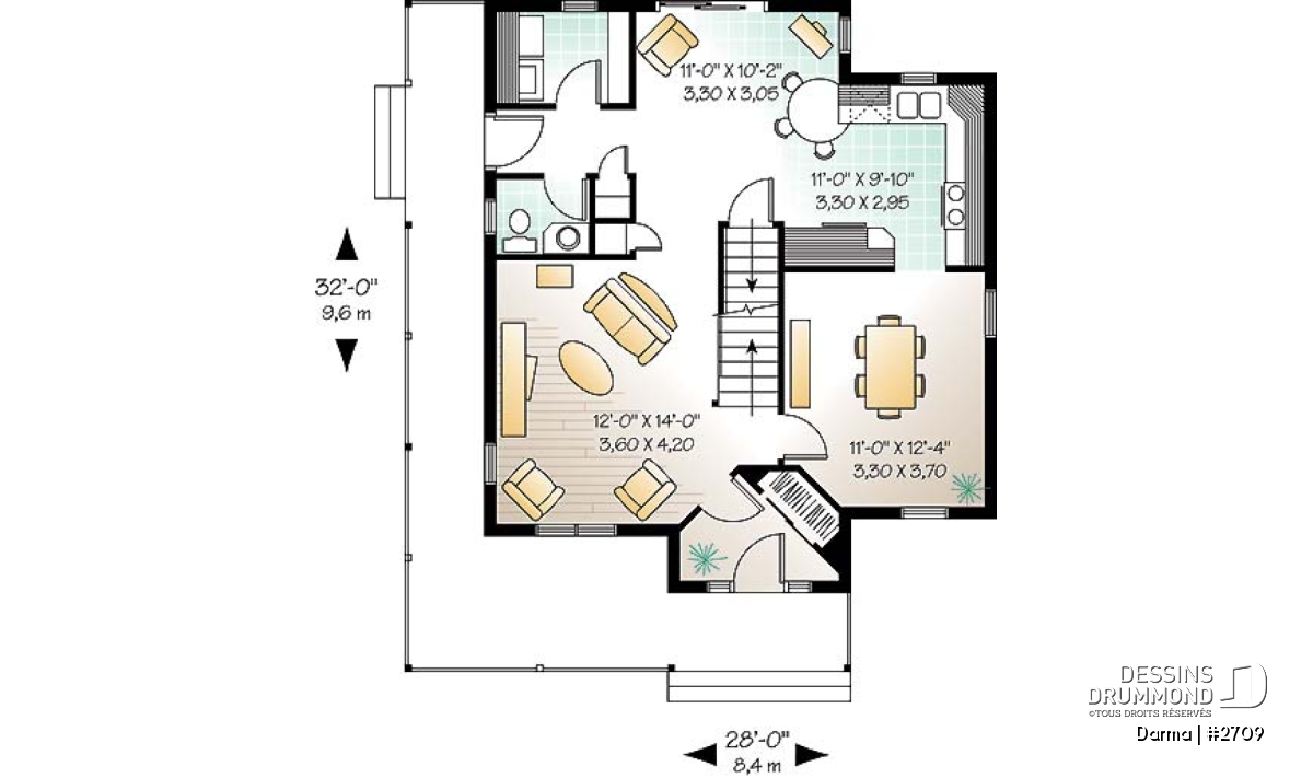 | Largeur | 28'0" | Profondeur | 32'0" |