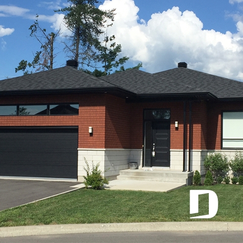 Celui-ci propose d’abord une façade principale où le bloc architectural côtoie la brique de façon balancée et pour une allure plutôt chic avec des portes et fenêtres foncées ajoutant à la fois contraste et caractère à l’ensemble.