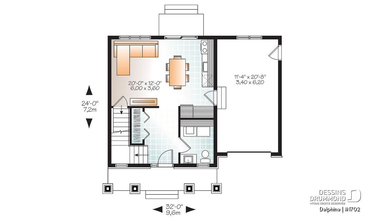 | Largeur | 32'0" | Profondeur | 24'0" |