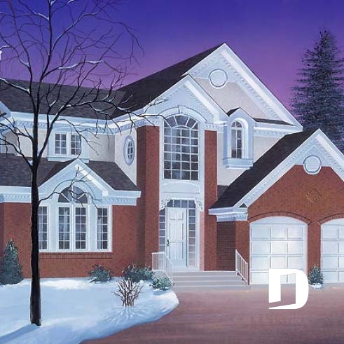 À la fois élégant et imposant, ce cottage se démarque de par son extérieur mariant agréablement la brique, l’agrégat et le bardeau d’asphalte sur des volumes tout à fait différents.