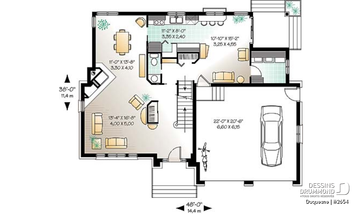 À l’intérieur, ce sont des espaces bien répartis qui meublent chacun des planchers et une fois de plus, la situation de l’escalier permet de maximiser les pieds carrés de chaque plancher.