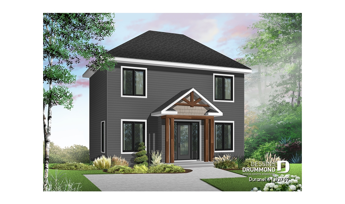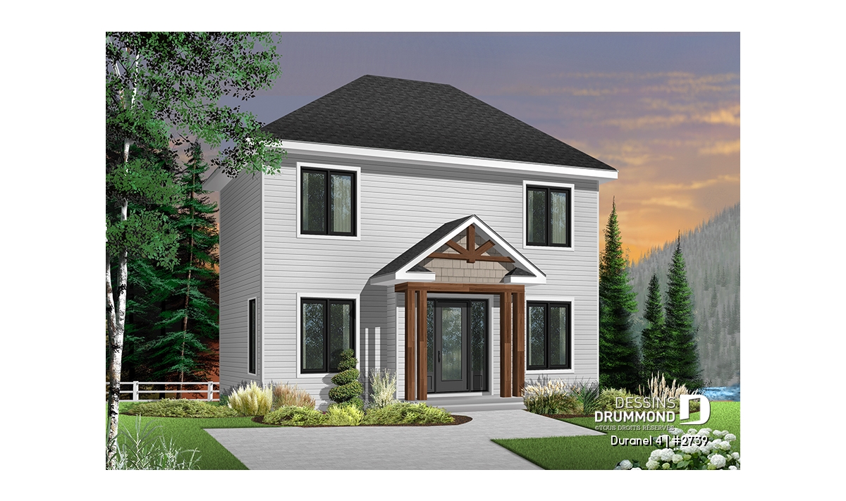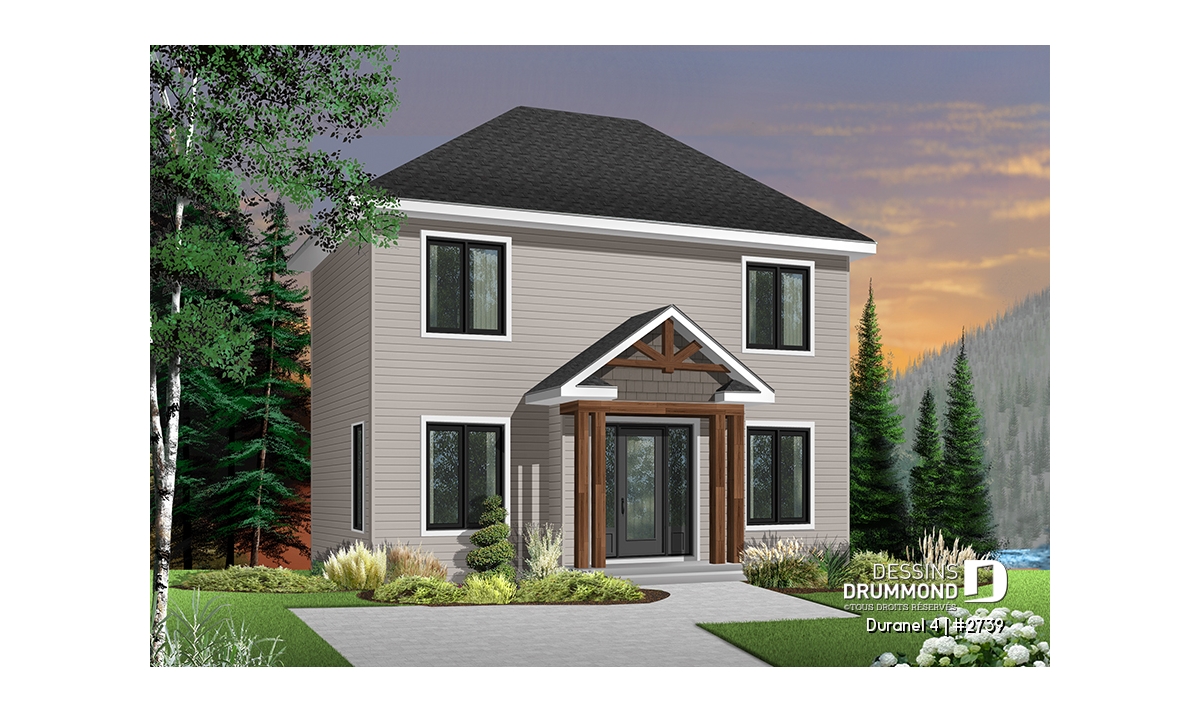 Fenestration abondante, perron avant abrité, éviers double, douche indépendante et bain en coin dans la salle de bain à l'étage.