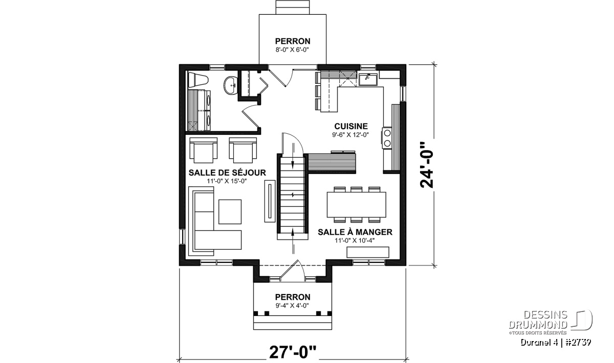 | Largeur | 27'0" | Profondeur | 26'0" |