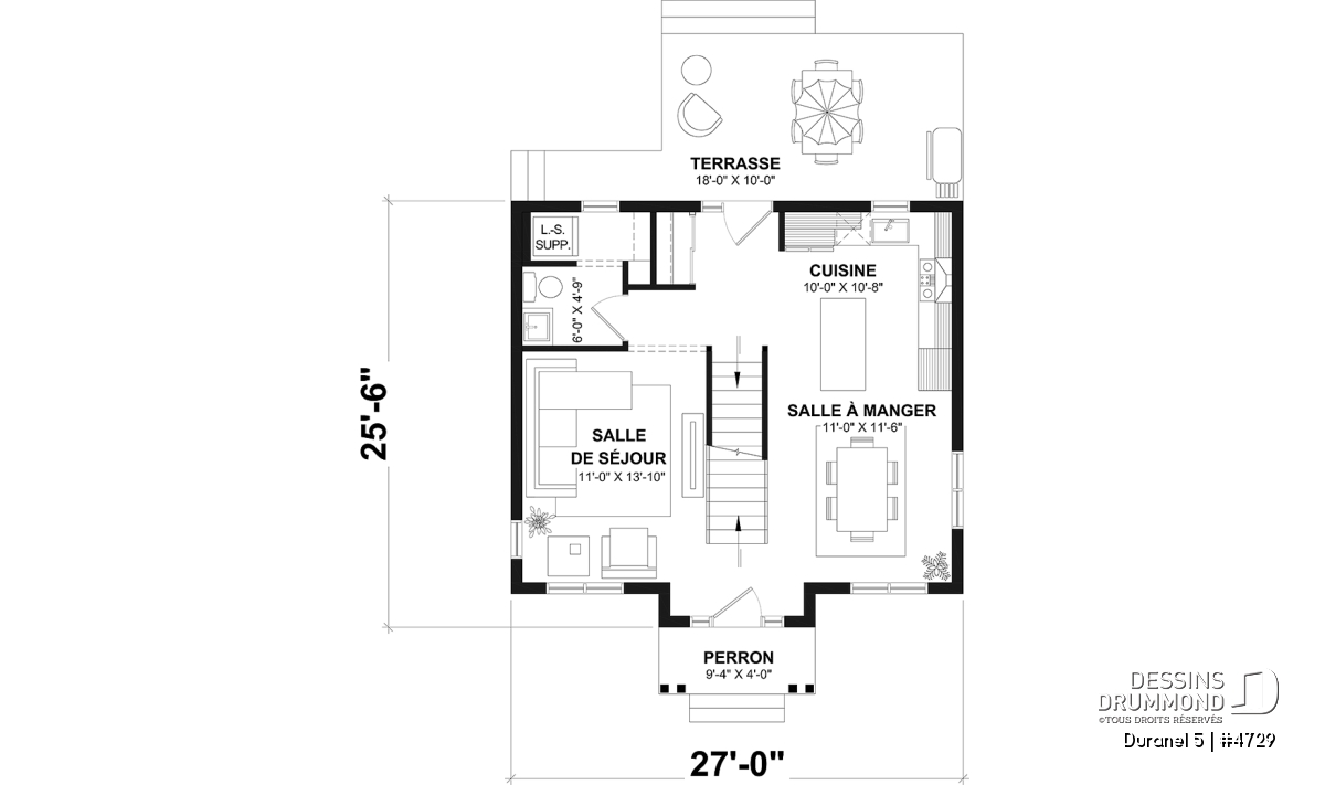 | Largeur | 27'0" | Profondeur | 25'6" |