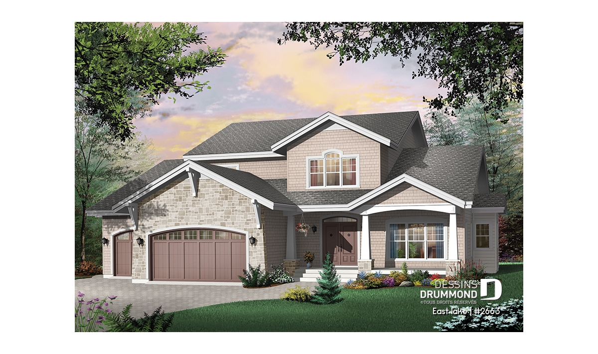 Plafond à 9 pi au rez-de-chaussée, superbe salle familiale et foyer mitoyen avec la suite des maîtres, média room ou bureau à l'avant, superbe espace dînette, grandes chambres à l'étage et salle de séjour.