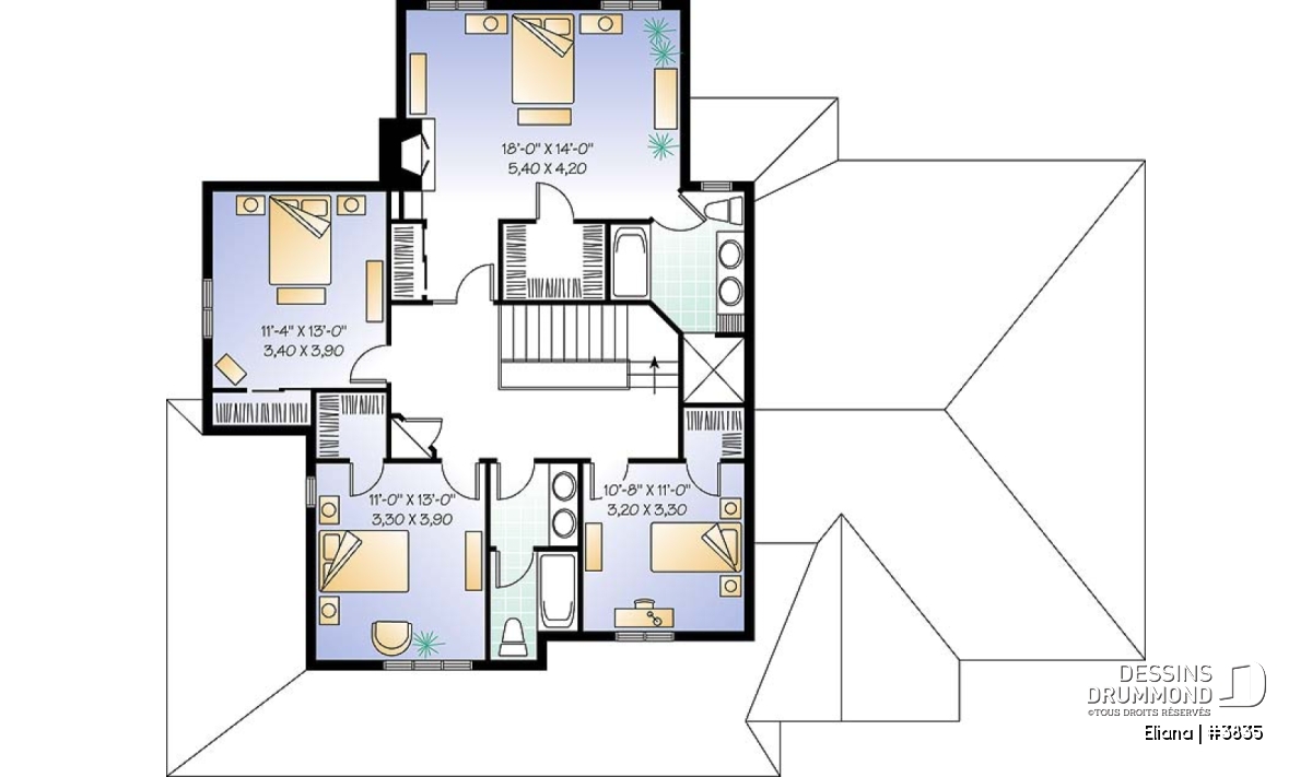 À l’étage, quatre chambres meublent le plancher dont une chambre des maîtres avec deux garde-robes, un foyer et une salle de bain privée. Quant aux trois autres chambres, d’excellents formats, celles-ci possèdent toutes une garde-robe adéquate et partagent une salle de bain suffisamment bien organisée.