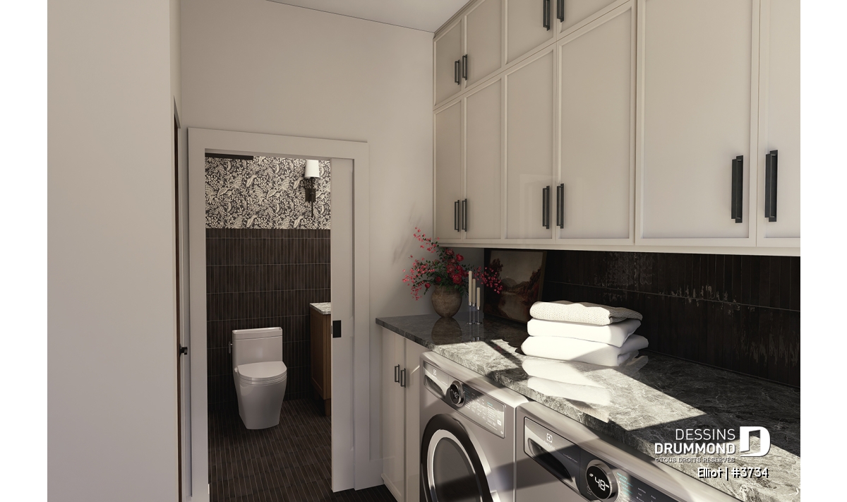 Salle de lavage au rez-de-chaussée, avec salle d’eau attenante à la chambre des maîtres.