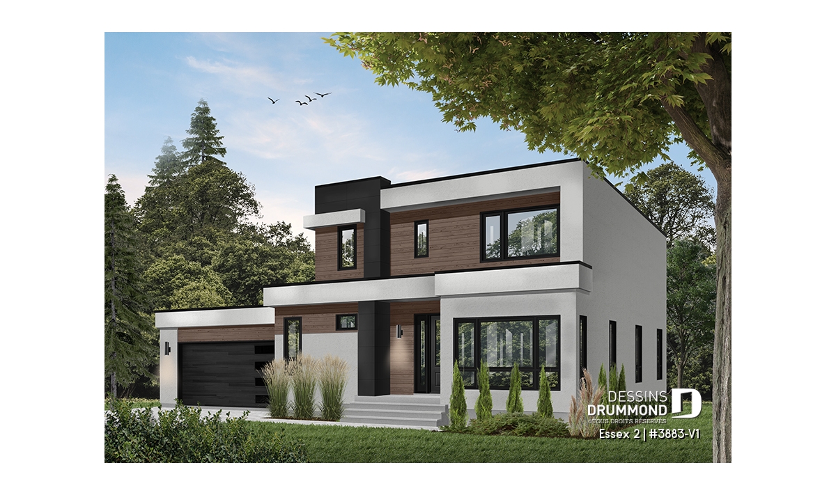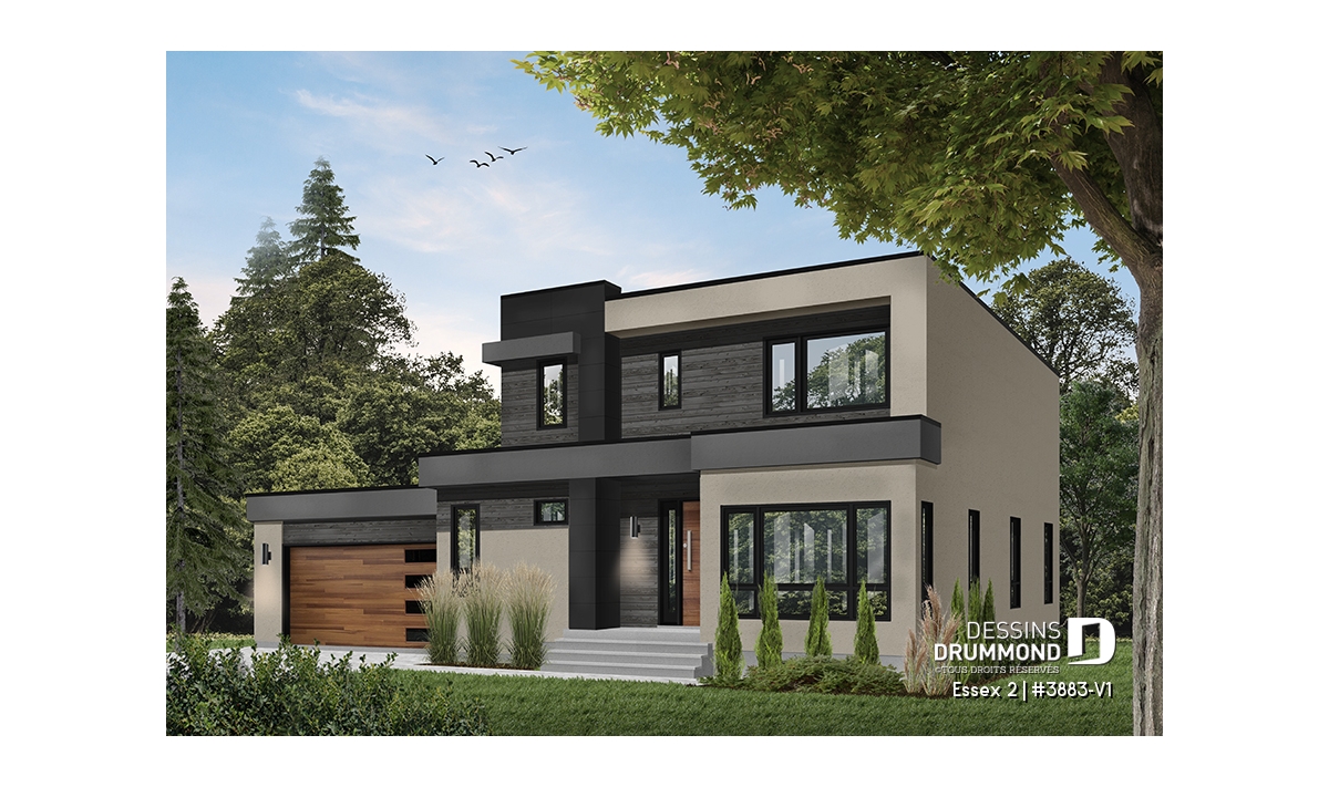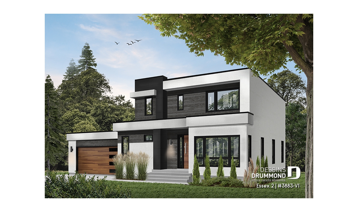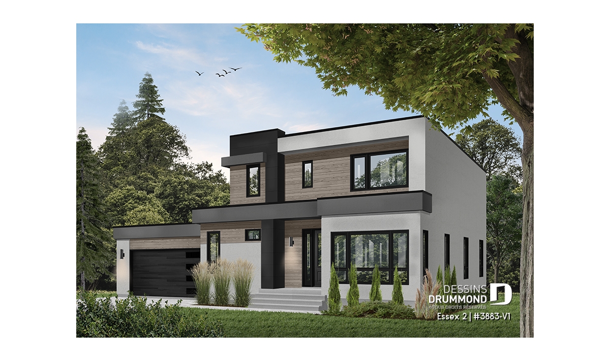Modèle de maison de style cubique, avec garage double.