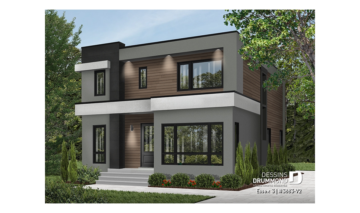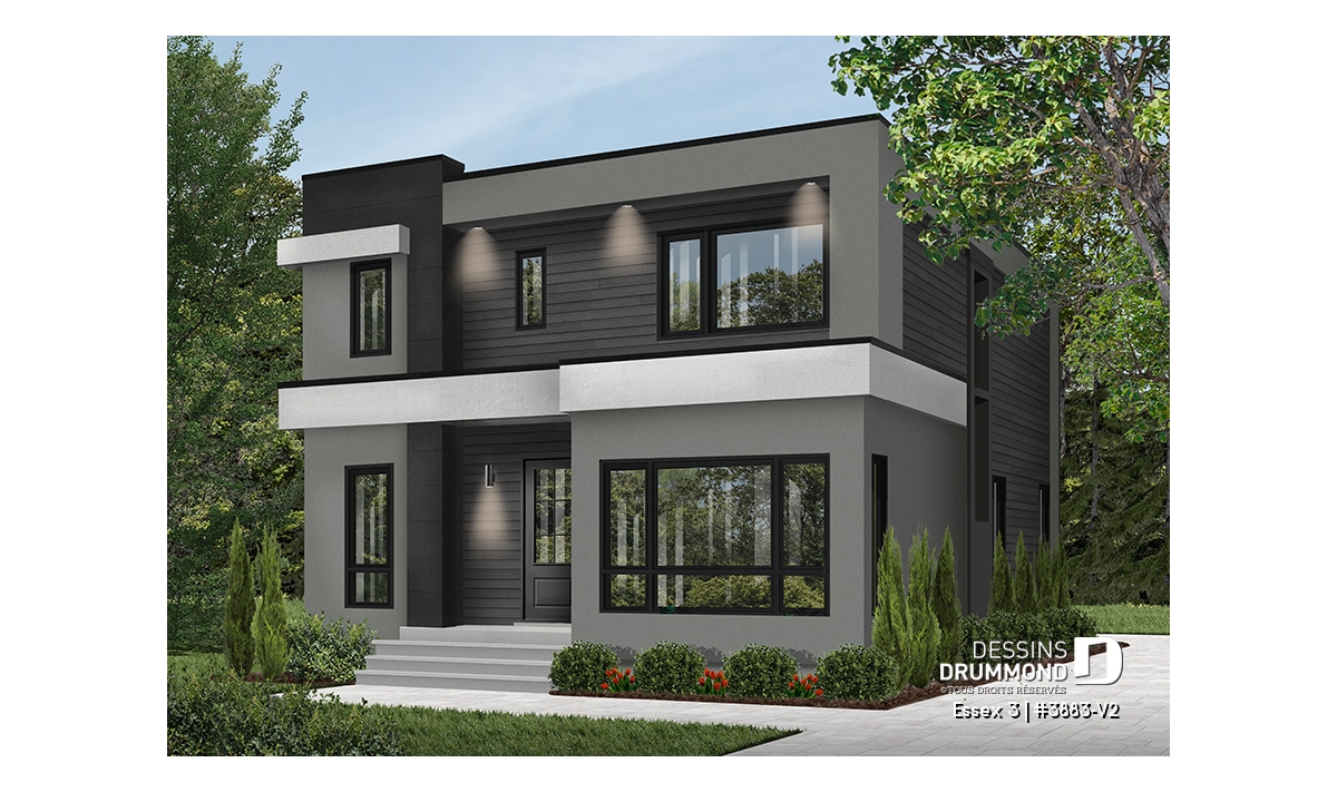 Le style épuré de ce modèle cubique plaira à notre clientèle avant-gardiste avec budget restreint qui cherche à se distinguer en s’offrant une maison tendance aux multiples commodités. Offrant 3 à 4 chambres dont une pièce versatile au rez-de-chaussée, ce plancher plaira aussi aux familles avec plusieurs enfants (possibilité de 4 chambres et aussi d’aménager le sous-sol) ainsi qu’aux familles recomposées qui ont besoin de beaucoup d’espace.