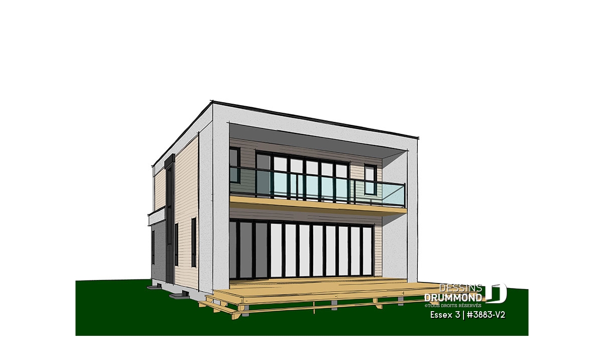 Deux versions avec garage existent de ce modèle, svp consultez nos plans 3883 et 3883-V1 si vous recherchez ce type de plan.