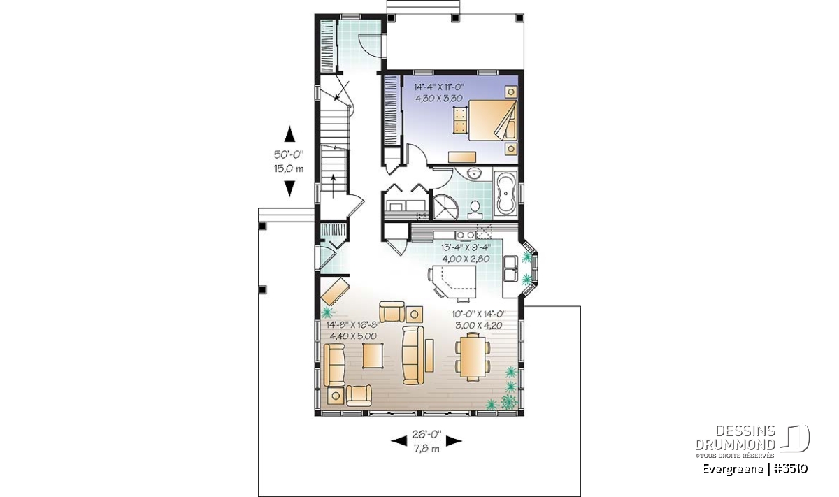 | Largeur | 26'0" | Profondeur | 50'0" |