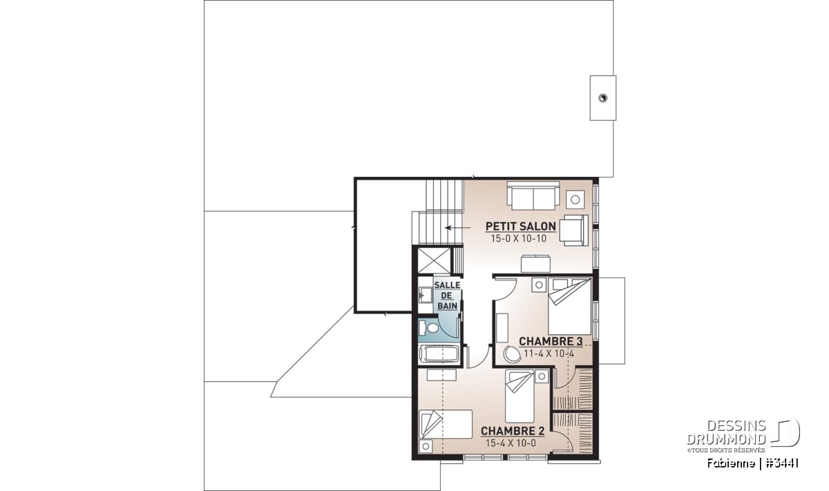 Petit salon accommodant tout près des chambres secondaires pouvant, au besoin, être converti en quatrième chambre.
