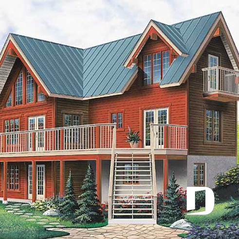 Plan de maison pour vue panoramique, chambre parents avec balcon, salon avec cathédrale et foyer