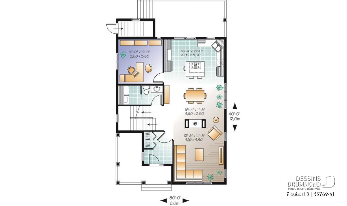Plafond à 9' sur tout le rez-de-chaussée.