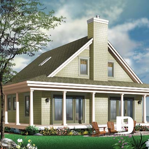 Maison style chalet avec balcon 3 faces couvert, aire ouverte, foyer, buanderie