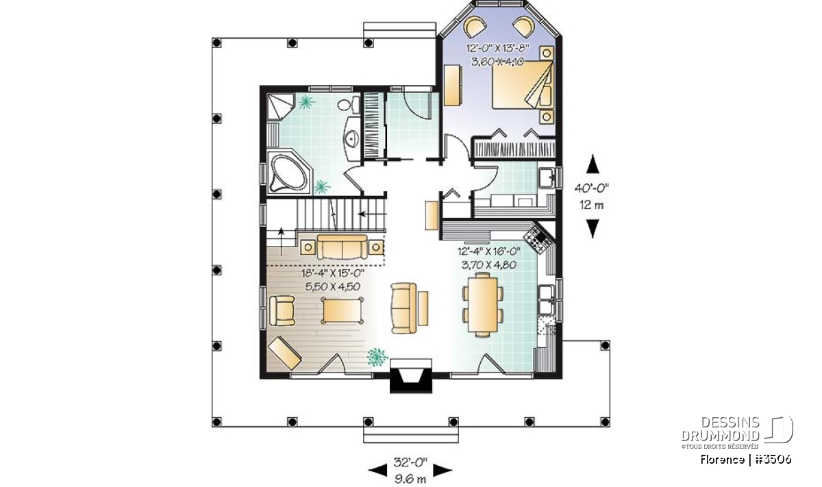 | Largeur | 32'0" | Profondeur | 40'0" |